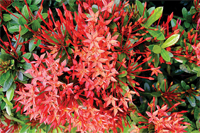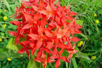 仙丹花原產熱帶亞洲,堪稱熱帶嬌娃,品種有20餘種。大王仙丹花常綠灌木或小喬木,葉對生,全緣,葉卵狀披針形,或長橢圓形,先端突尖,全年開花,但以夏、秋較盛開,花冠紅色,花徑可達15公分以上。花頂生,繖形花序,花瓣四枚,聚生成團。大王仙花是仙丹花中最大的品種,雍容華貴。