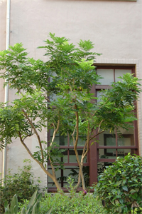 無患子又名目浪樹,係落葉喬木,株高15公尺。偶數羽狀複葉,小葉5~8對,互生,卵狀披針形,葉基歪形,左右不等,長9~12公分,葉柄有稜角。萼片5,花瓣5,白色或淡紫色,雄蕊8,柱頭三裂。核果扁球形,熟時黃綠色。種子一粒紫黑色。吉祥語:「含笑、合歡、無患子」。