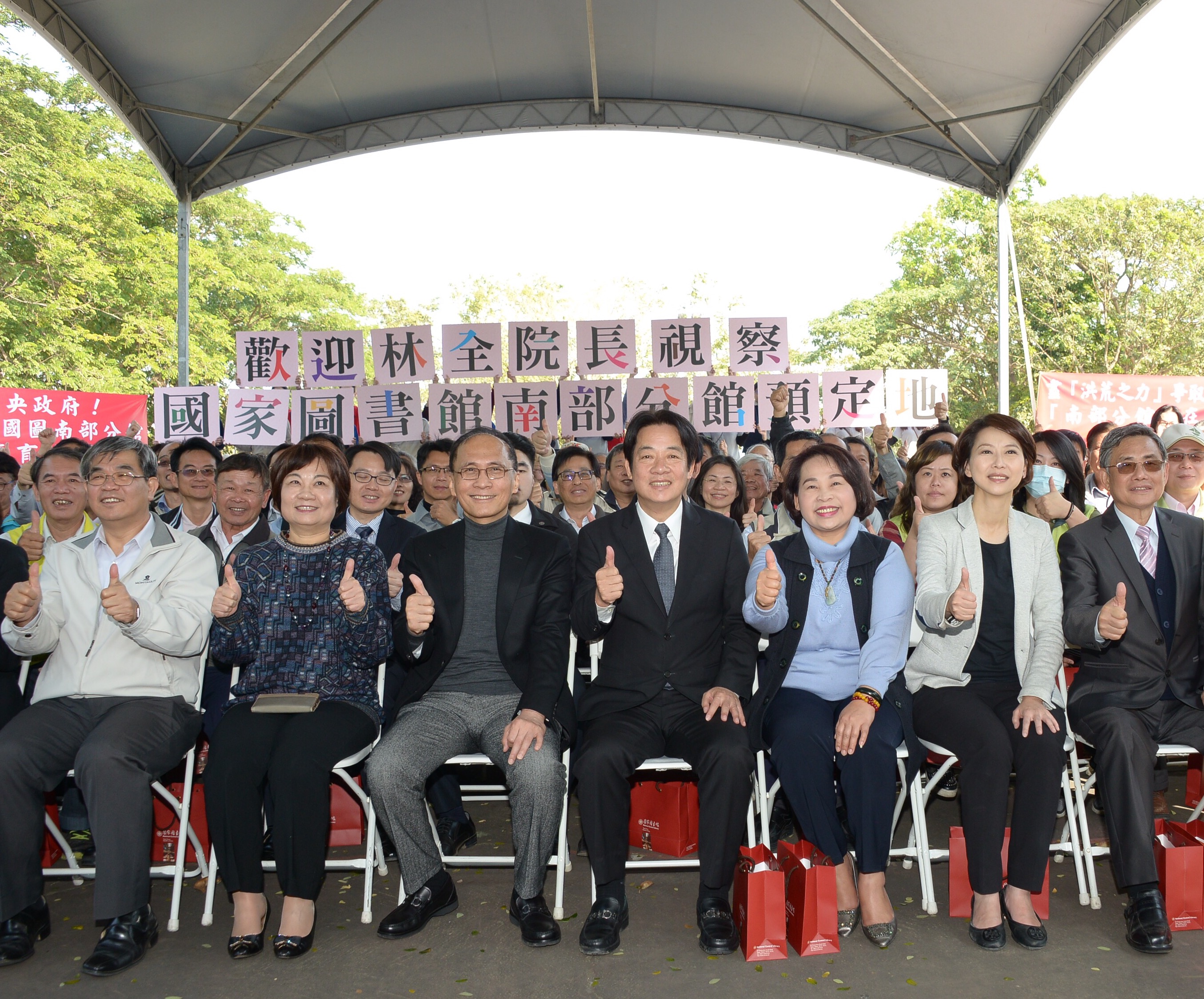 行政院長林全今(14)日前往台南市視察「國家圖書館南部分館暨聯合典藏中心」預定地時表示,希望藉由興建國圖南館,讓閱讀資源做更好的分配;也期待國圖南館引進最新科技,做好數位典藏、數位化服務等工作,並建構......【詳全文】