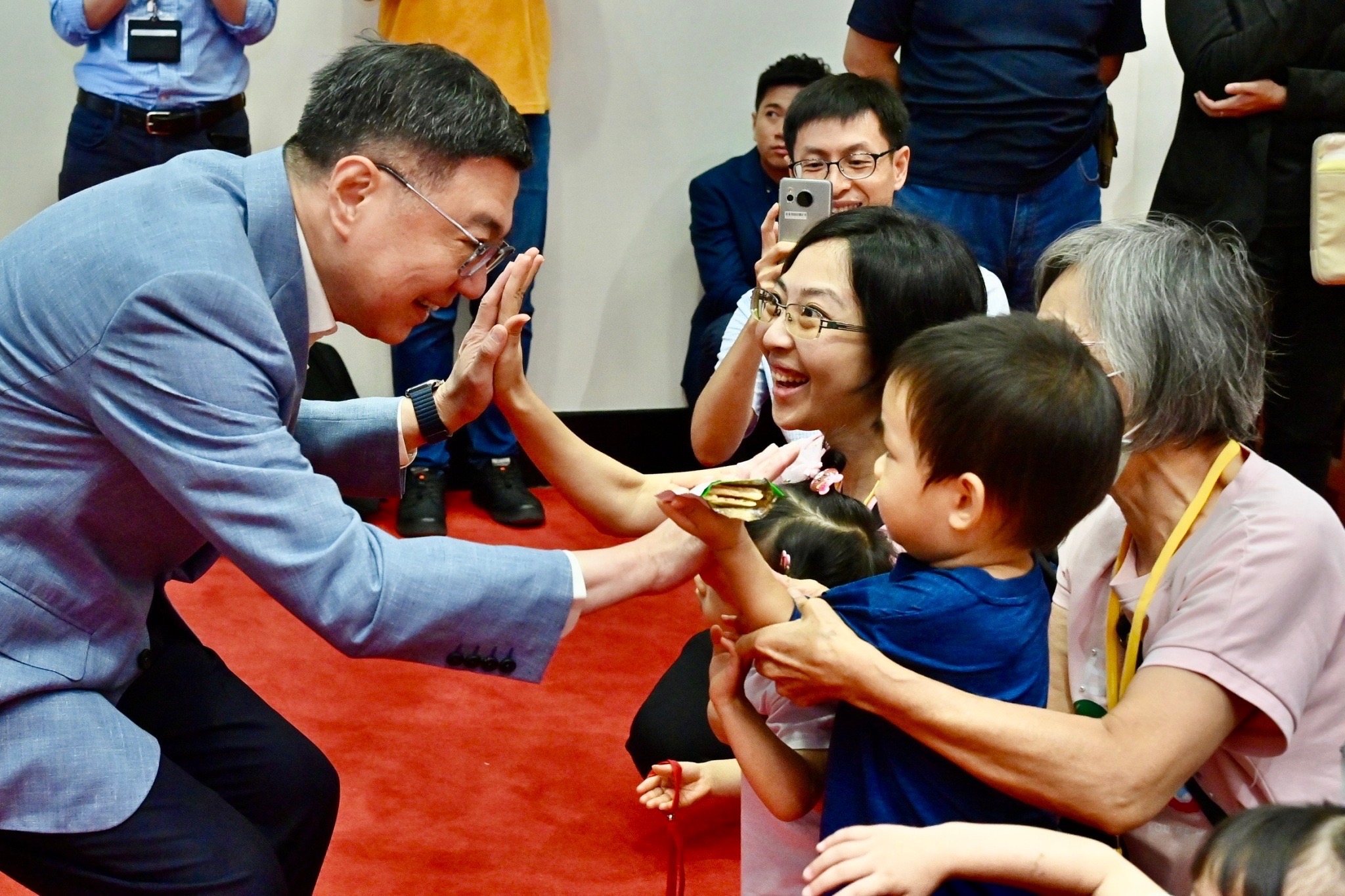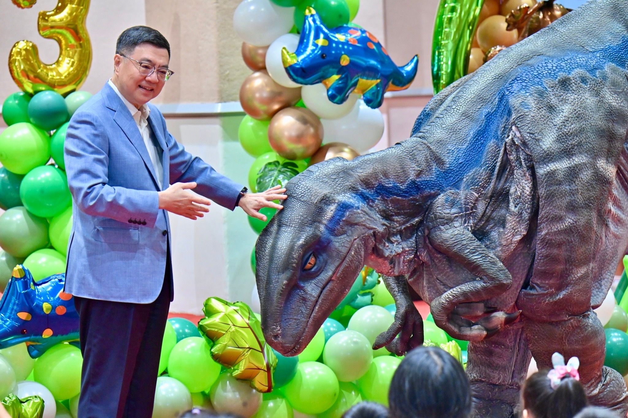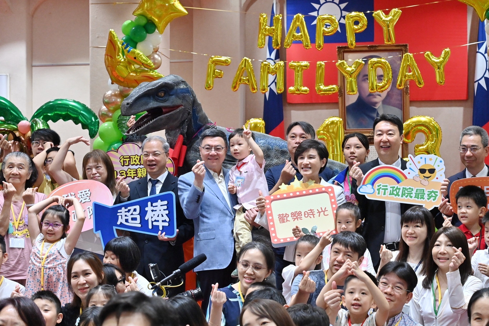 行政院長卓榮泰今(16)日出席行政院親子日活動,與同仁及眷屬們同歡,院長也親切地與小朋友們擊掌及合影,並與表演團體恐龍馬戲團的主角迅猛龍「阿波」趣味互動,逗得小朋友們開懷大笑,讓行政院變身成為一座快樂......【詳全文】