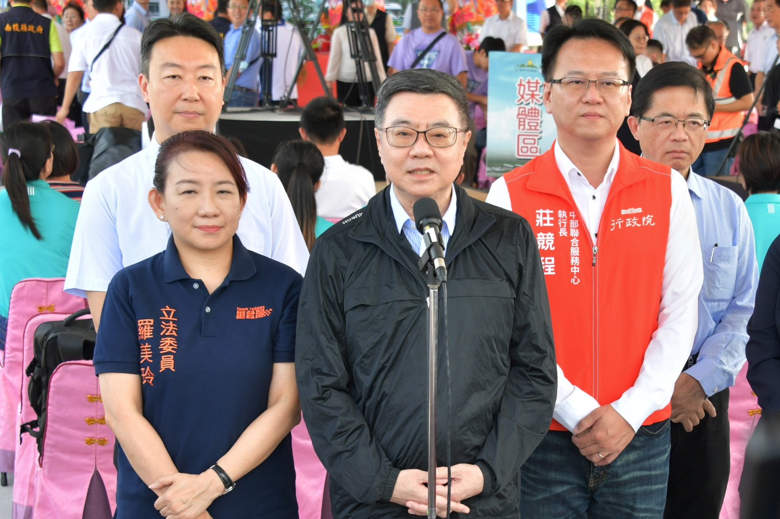 地點:行政院大禮堂1、各媒體限1名文字及1名攝影記者入場。 2、開放媒體至訪賓致詞結束。 3、欲採訪媒體,請由本院北平東路門口進入院區,並於10:15至本院記者室集合,由新傳處同仁統一引導,從本院中央大樓前門進出。