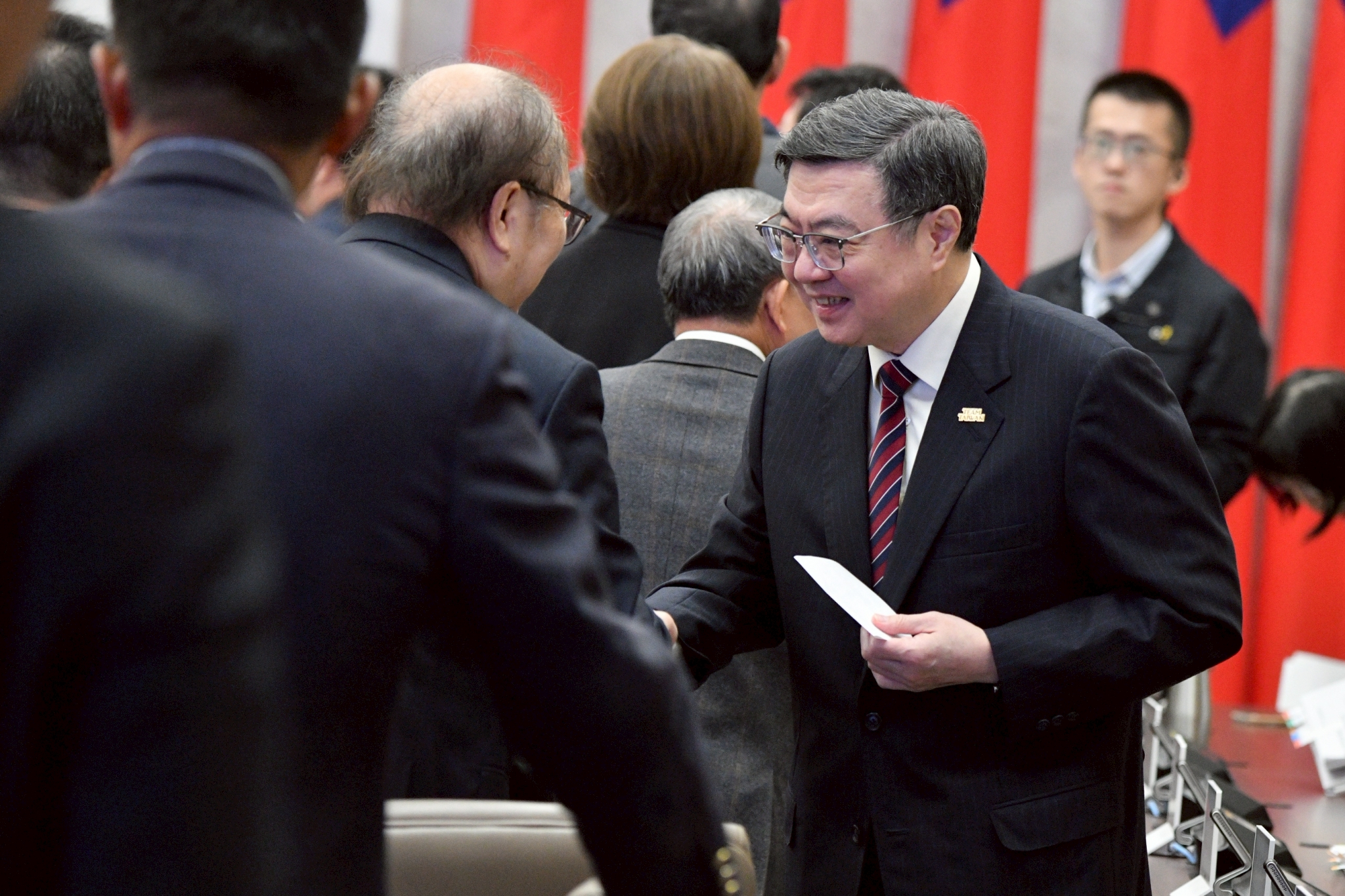 地點:行政院第1會議室1、會議開始前,先在本院中央大樓1樓大廳進行大合影,開放媒體採訪至大合影結束,接續於第1會議室進行會議,不開放媒體採訪,會後由新傳處發布新聞稿及照片。 2、考量場地限制,中央大樓1樓大廳限1名文字及1名攝影記者採訪。 3、欲採訪媒體,請由北平東路門口進入院區,並於09:30至記者室集合,由新傳處同仁統一引導至中央大樓1樓大廳。