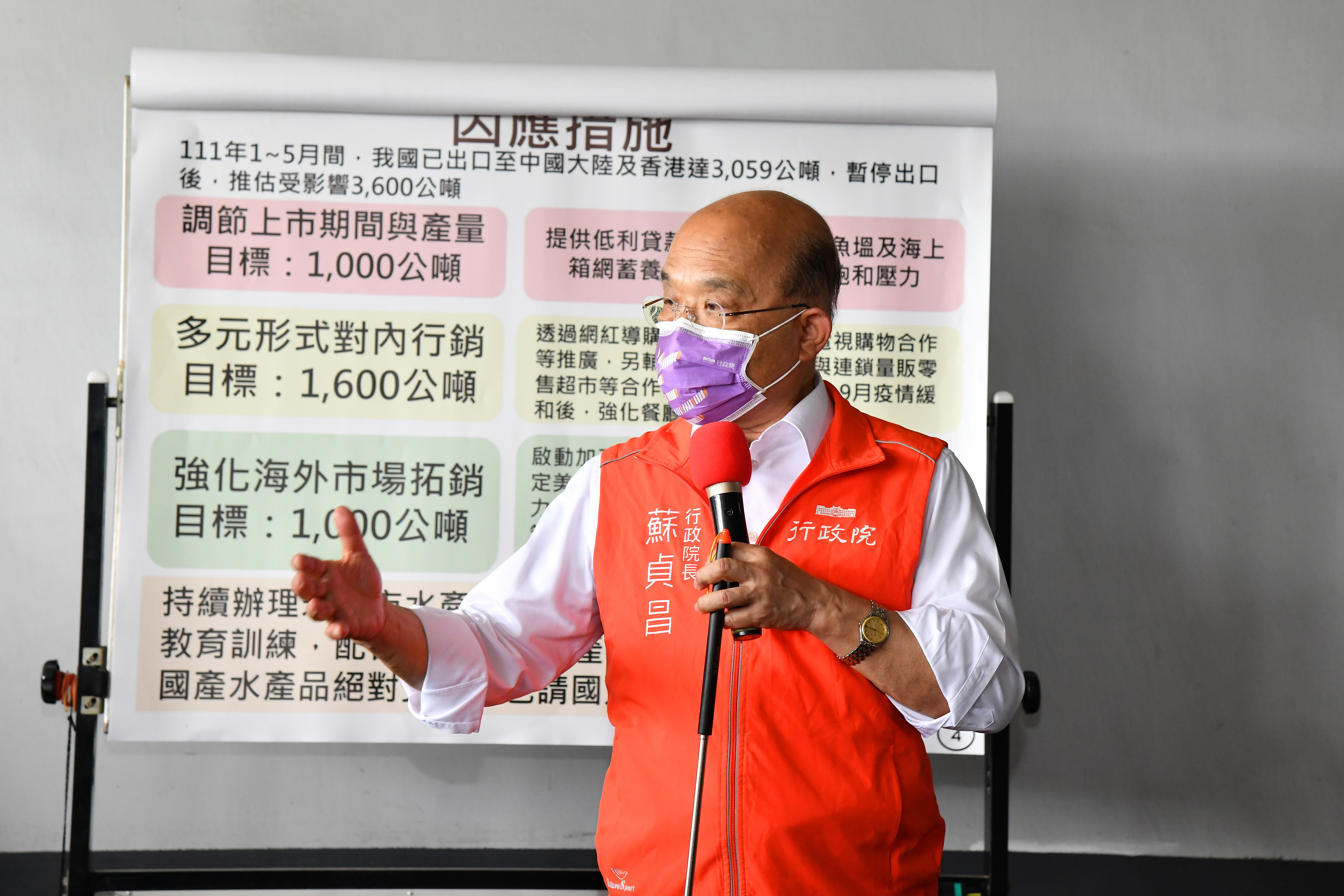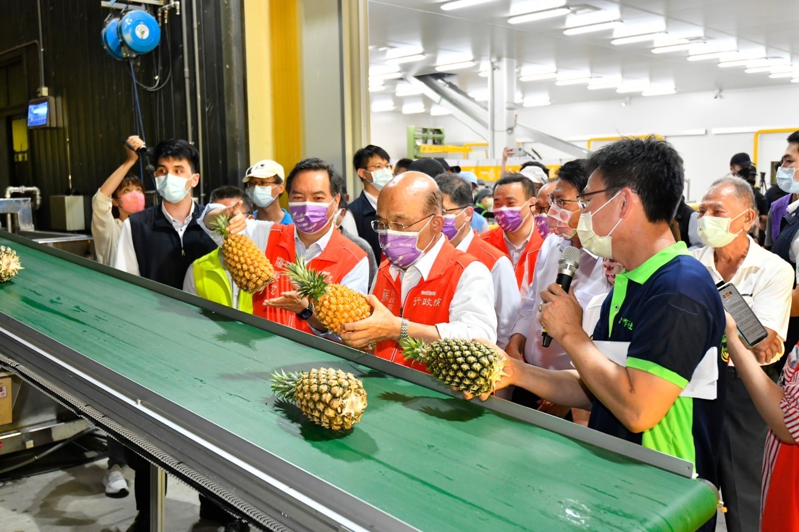 行政院長蘇貞昌今(12)日前往屏東分別視察石斑魚養殖場及鳳梨冷鏈集貨包裝場,親自向農漁民說明臺灣農、水產品出口情形及政府因應中國禁銷對策,並至東港鹽埔漁港關心五房排水設施、冷鏈物流中心及鹽埔卸魚場等漁......【詳全文】