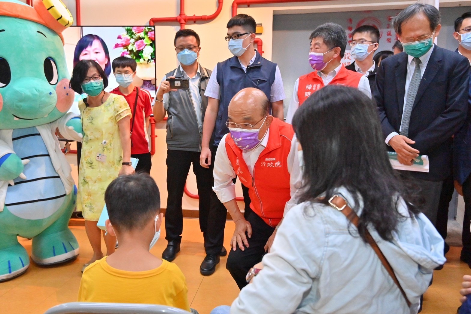 端午連假,行政院長蘇貞昌今(3)日到中南部視察3座兒童疫苗大型接種站,並慰勉醫護同仁的辛勞。院長表示,為解決學校暫停實體課程期間,兒童疫苗施打問題,並減輕地方第一線診所的負擔,中央已在六都設置7座兒童......【詳全文】
