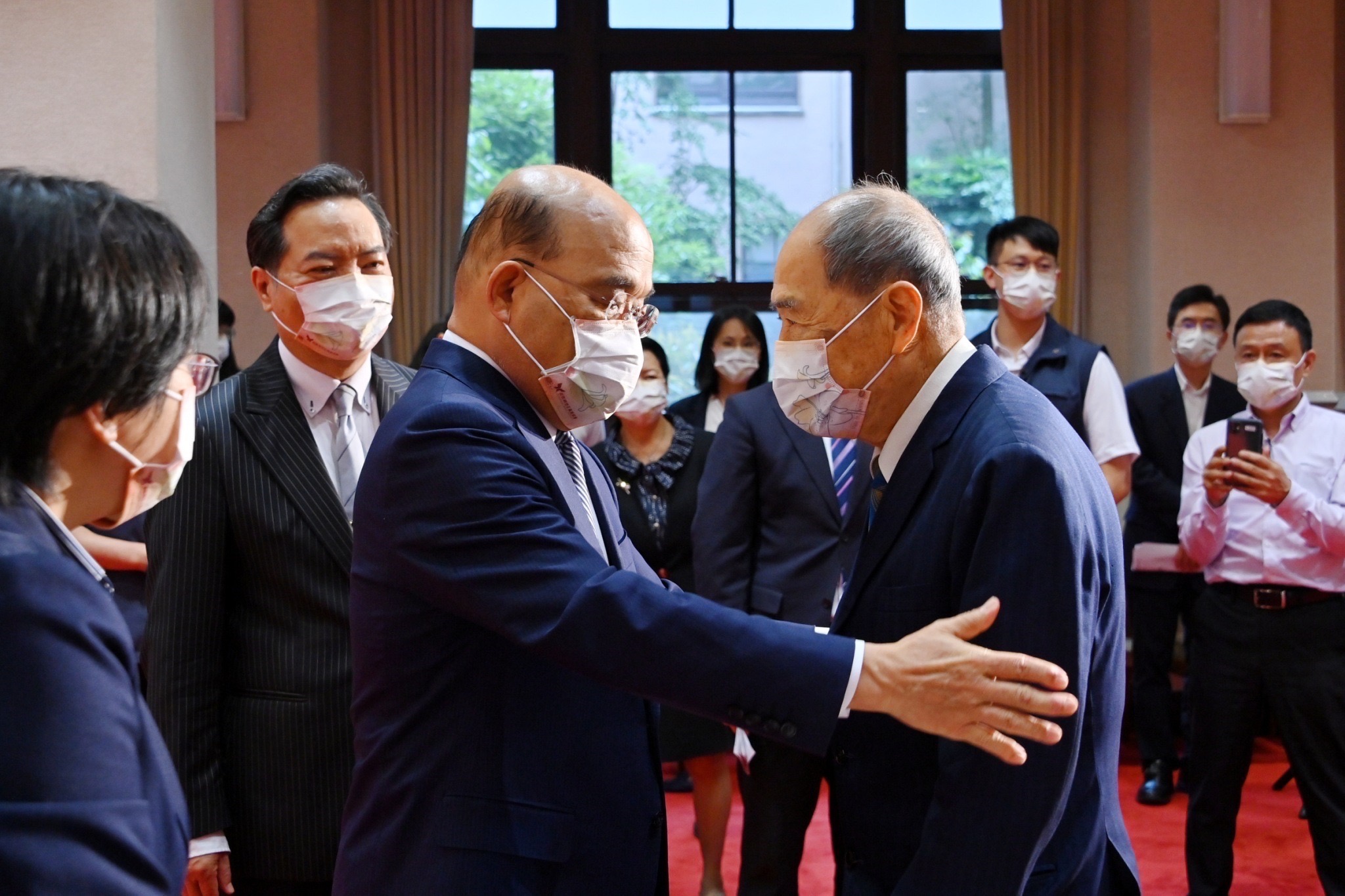 地點:行政院大禮堂(臺北市中正區忠孝東路1段1號)1.全程開放媒體至合影結束。 2.採訪媒體,請於15:15至行政院記者室集合,並請由本院北平東路門口進入院區。 3.配合防疫,媒體朋友請全程佩戴口罩、保持社交距離,並請填寫TOCC表單( https://forms.gle/hK7uN5FzidzN8zmq6 )。