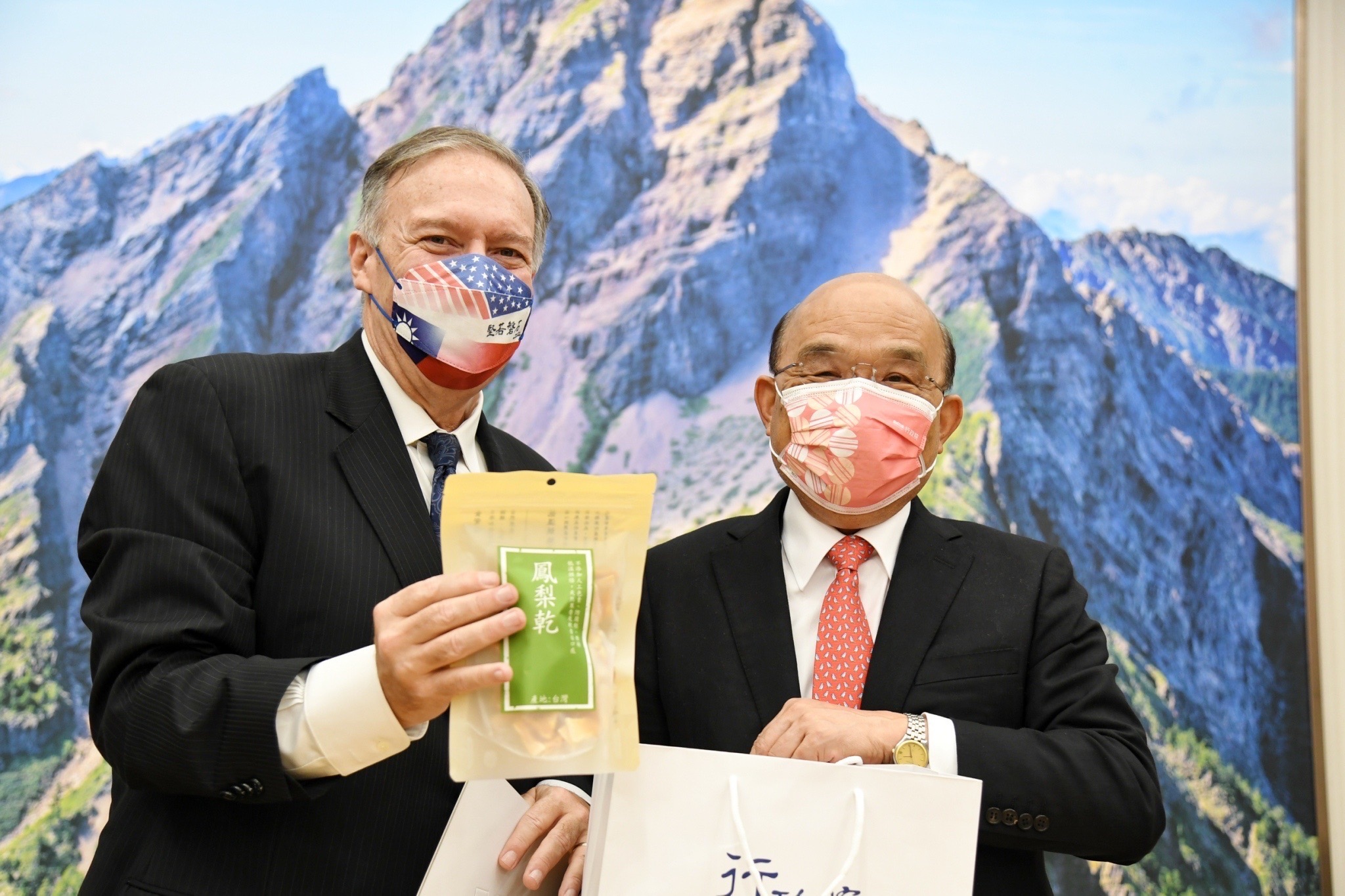 行政院長蘇貞昌今(3)日接見美國第70屆國務卿龐培歐(Michael Pompeo)一行,感謝渠在國務卿任內促進臺美關係、對臺大力支持,並推動多項友臺措施,包括促成多次對臺軍售、解除臺灣重要官員訪美限......【詳全文】