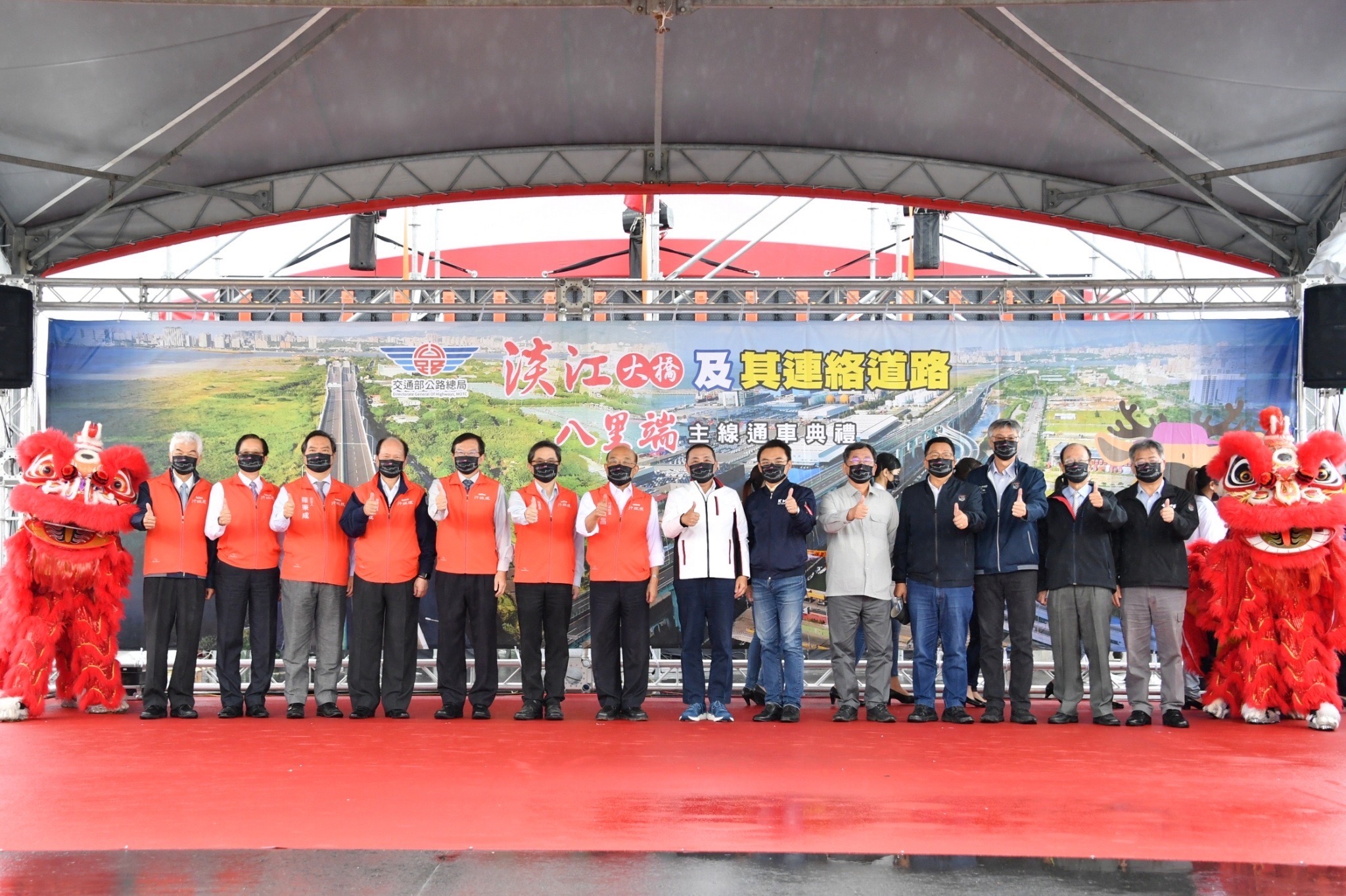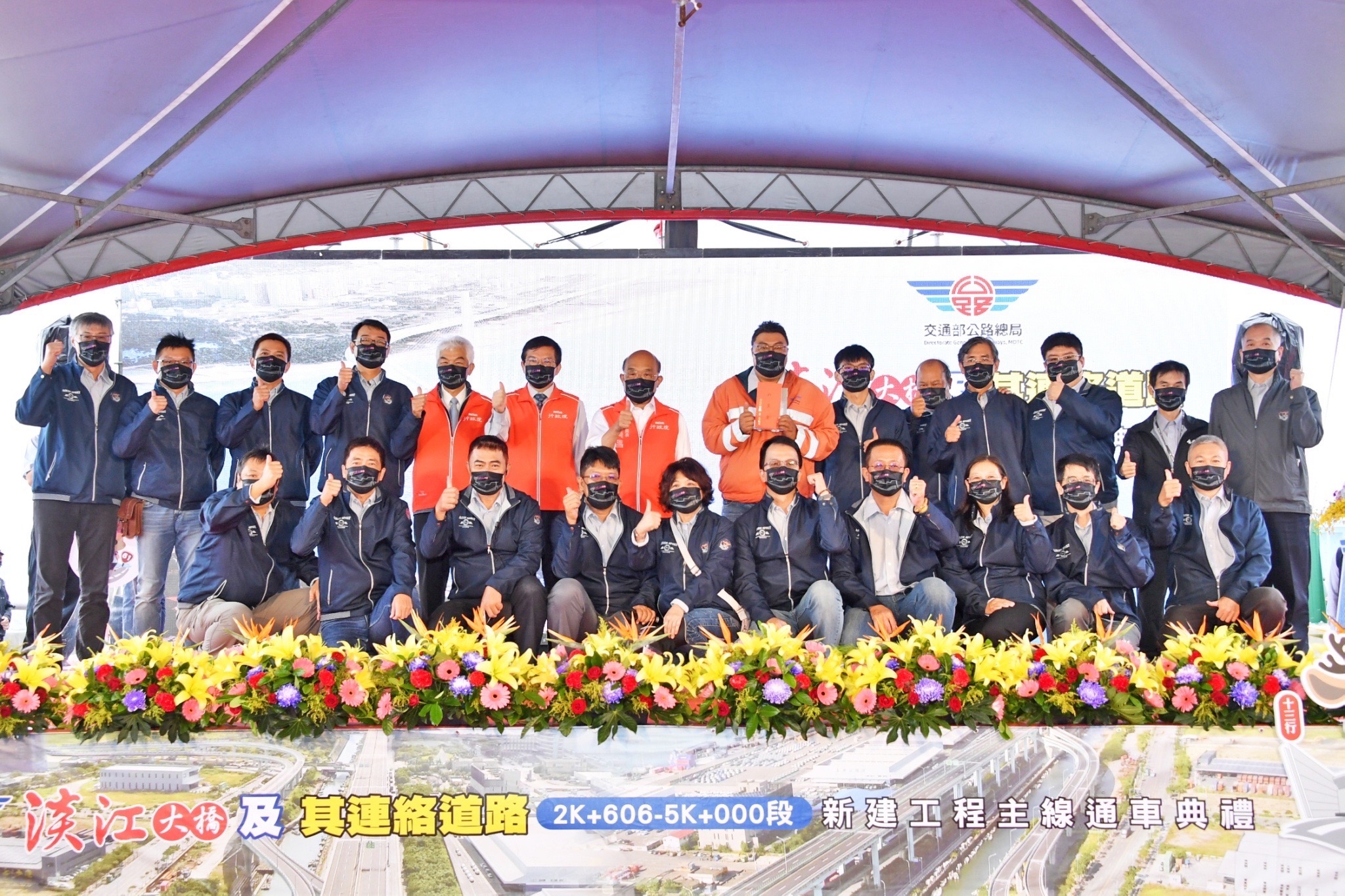 地點:台61線八里一交流道高架橋上。請於商港九路與臨港大道轉角沿指引進入匝道(Google座標:25.156694, 121.400503)至會場。1. 防疫考量,本行程採「共訊」方式辦理,已協調SNG聯誼會共訊,並由新傳處提供照片。 2. 配合防疫,媒體朋友請全程佩戴口罩並保持社交距離。