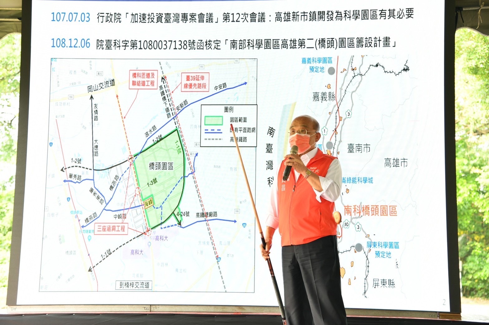 行政院長蘇貞昌今(2)日視察高雄橋頭科學園區及聯外交通建設時表示,有關高雄橋頭科學園區及5項聯外交通建設,他要求相關部會均需「並聯」同步施作、同步到位,廠商一進駐就能夠有完整的進出道路。橋頭科學園區今......【詳全文】