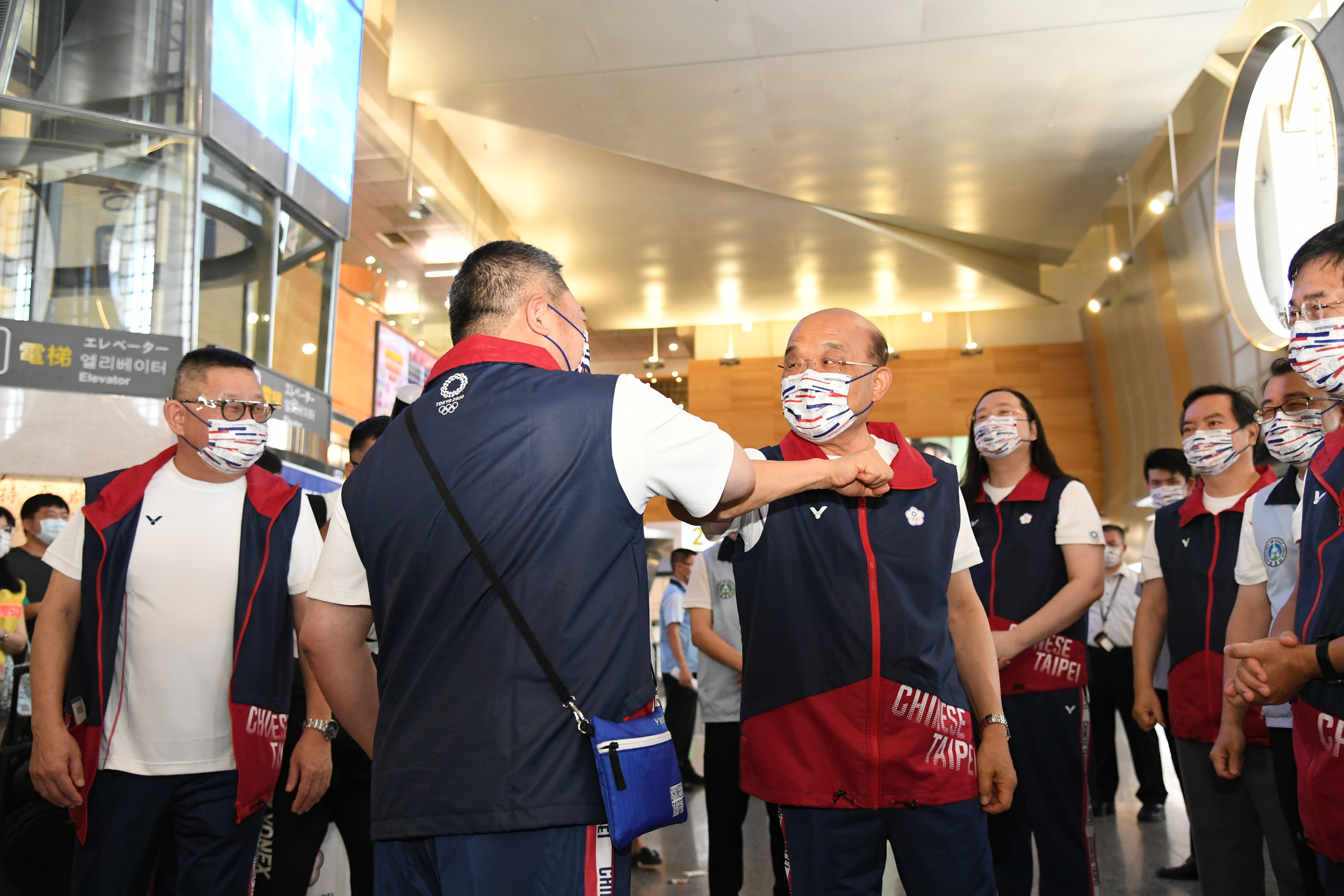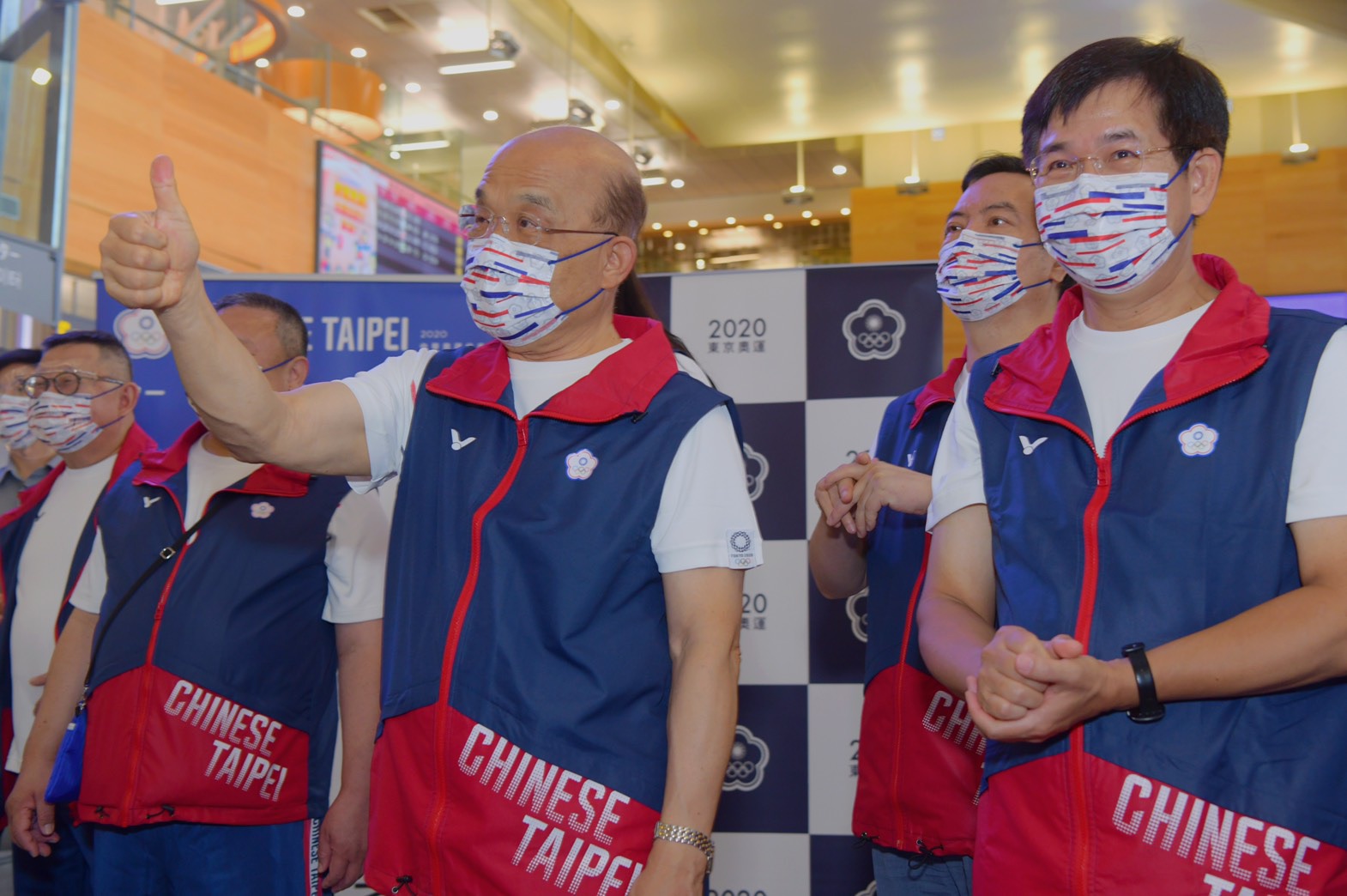 為臺灣選手加油,行政院長蘇貞昌今(19)日特別身著我國2020東京奧運會代表團團服,赴松山機場歡送我國代表團。院長表示,政府在體育各方面投入資源,像是體育場所、國家運動中心等培訓設施及客製化訓練等,而......【詳全文】