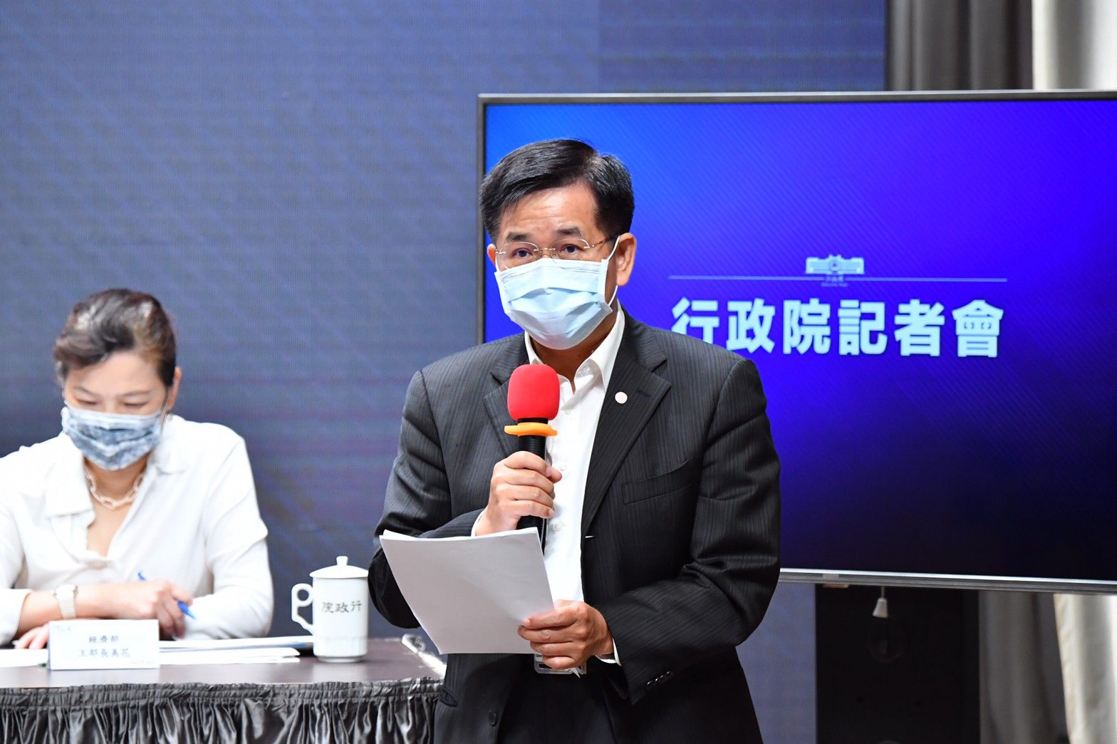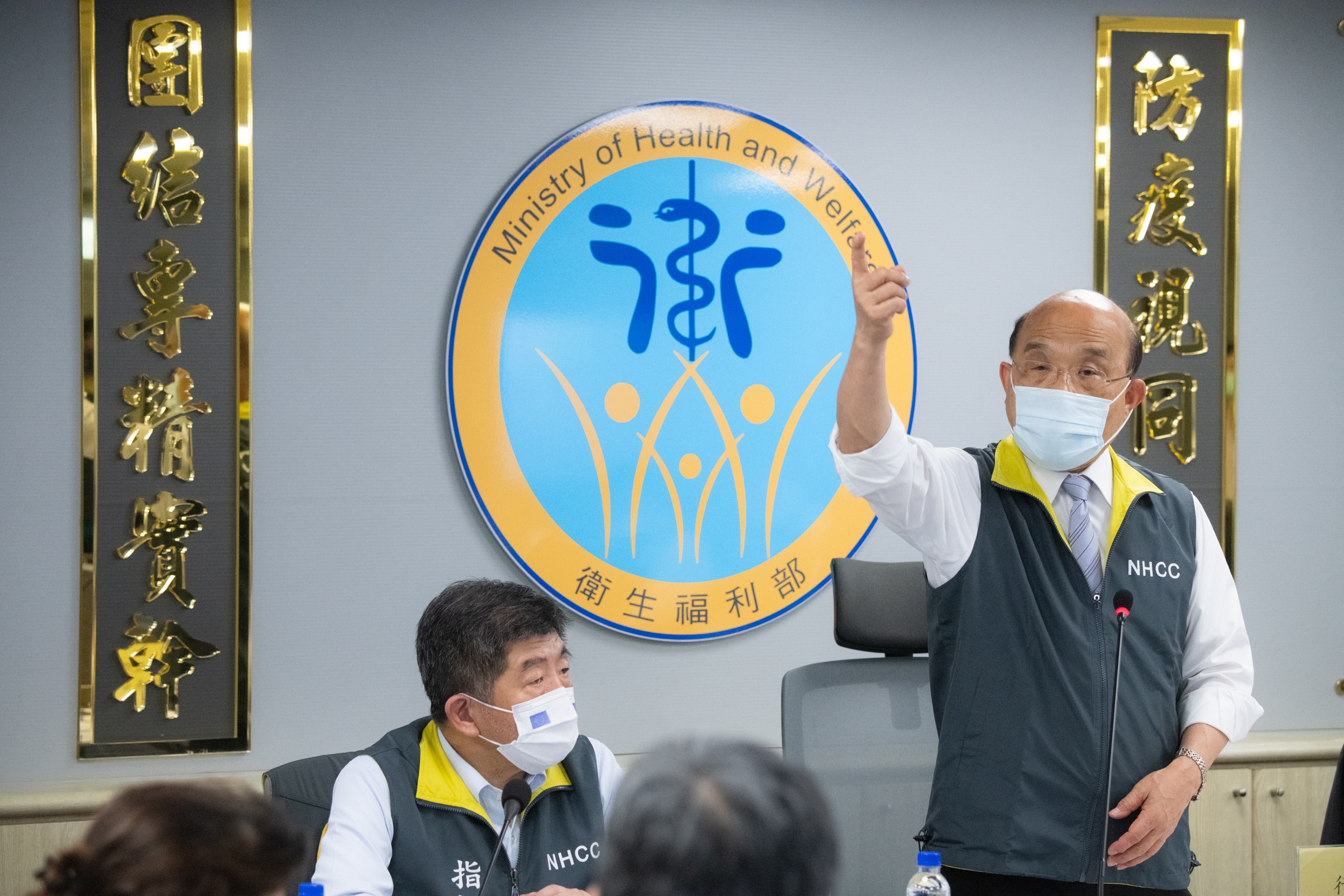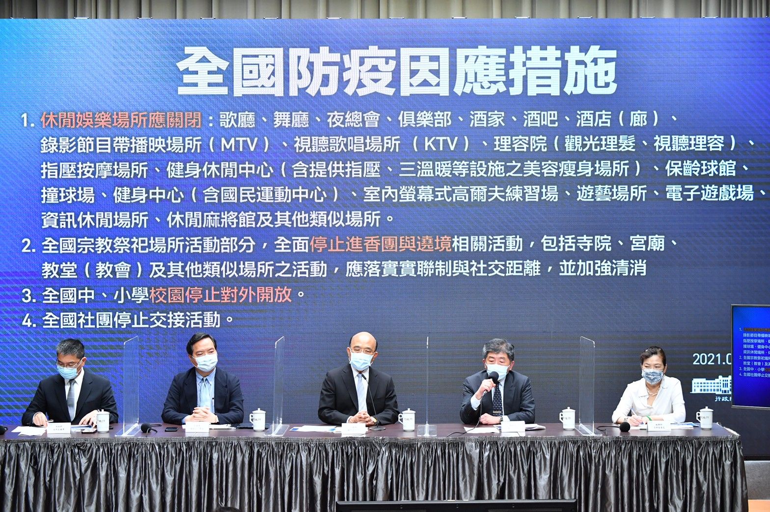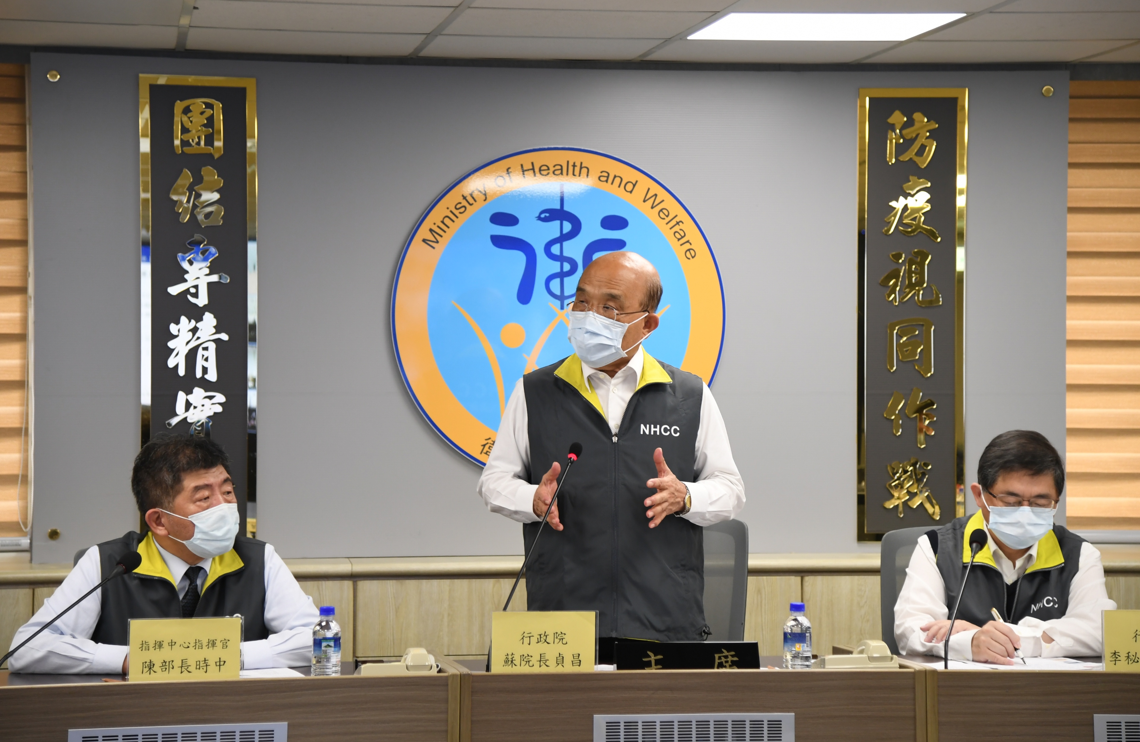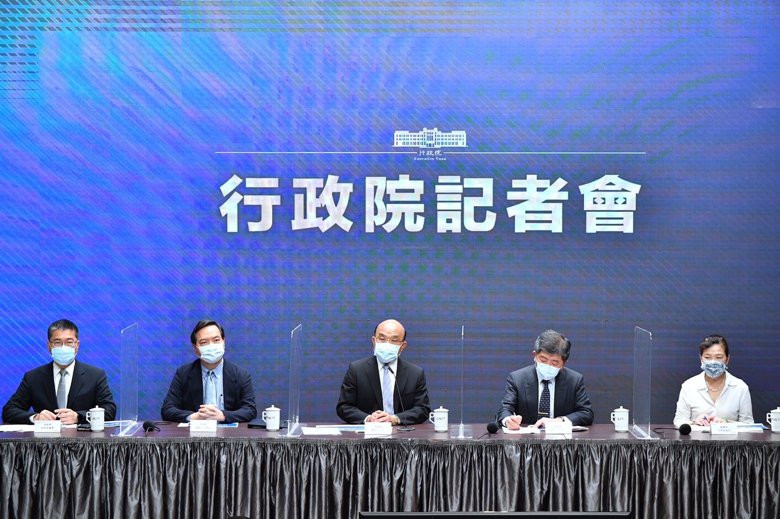 地點:行政院1. 各家僅開放一文字入場,新聞照片統一由新傳處提供,另已協調SNG聯誼會共訊,本日由華視供訊。 2. 媒體朋友進入新聞中心前需登記,使用酒精乾洗手,全程需佩戴口罩。座位區採梅花座,敬請配合辦理。