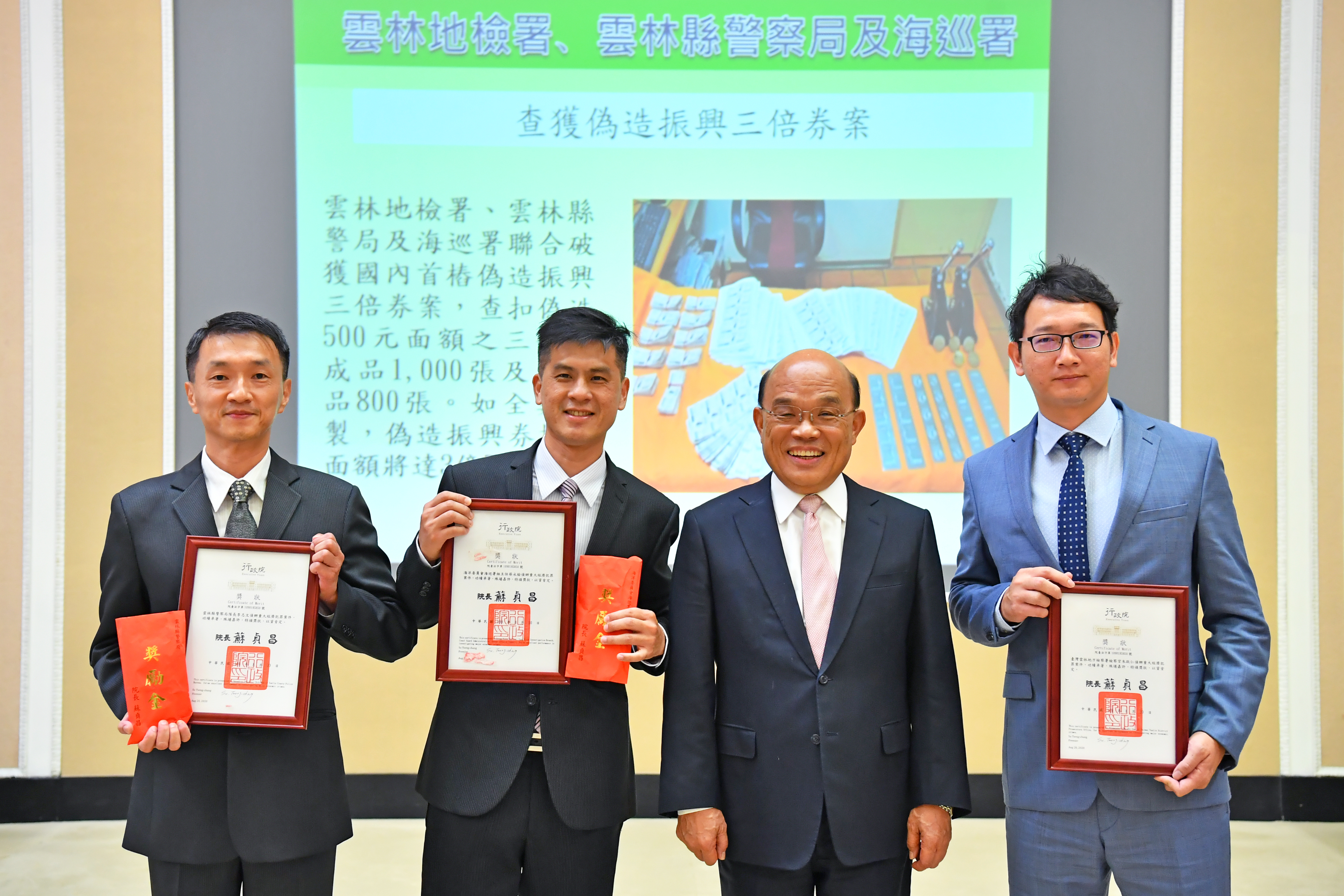 行政院長蘇貞昌今(20)日於行政院會頒獎表揚偵破偽造三倍券集團、仿造MIT偽劣口罩以及違反森林法及野生動物保育法案等重大經濟案件執法有功人員共9人,藉此鼓勵全國公務人員守住中央到地方每一個環節,讓人民......【詳全文】