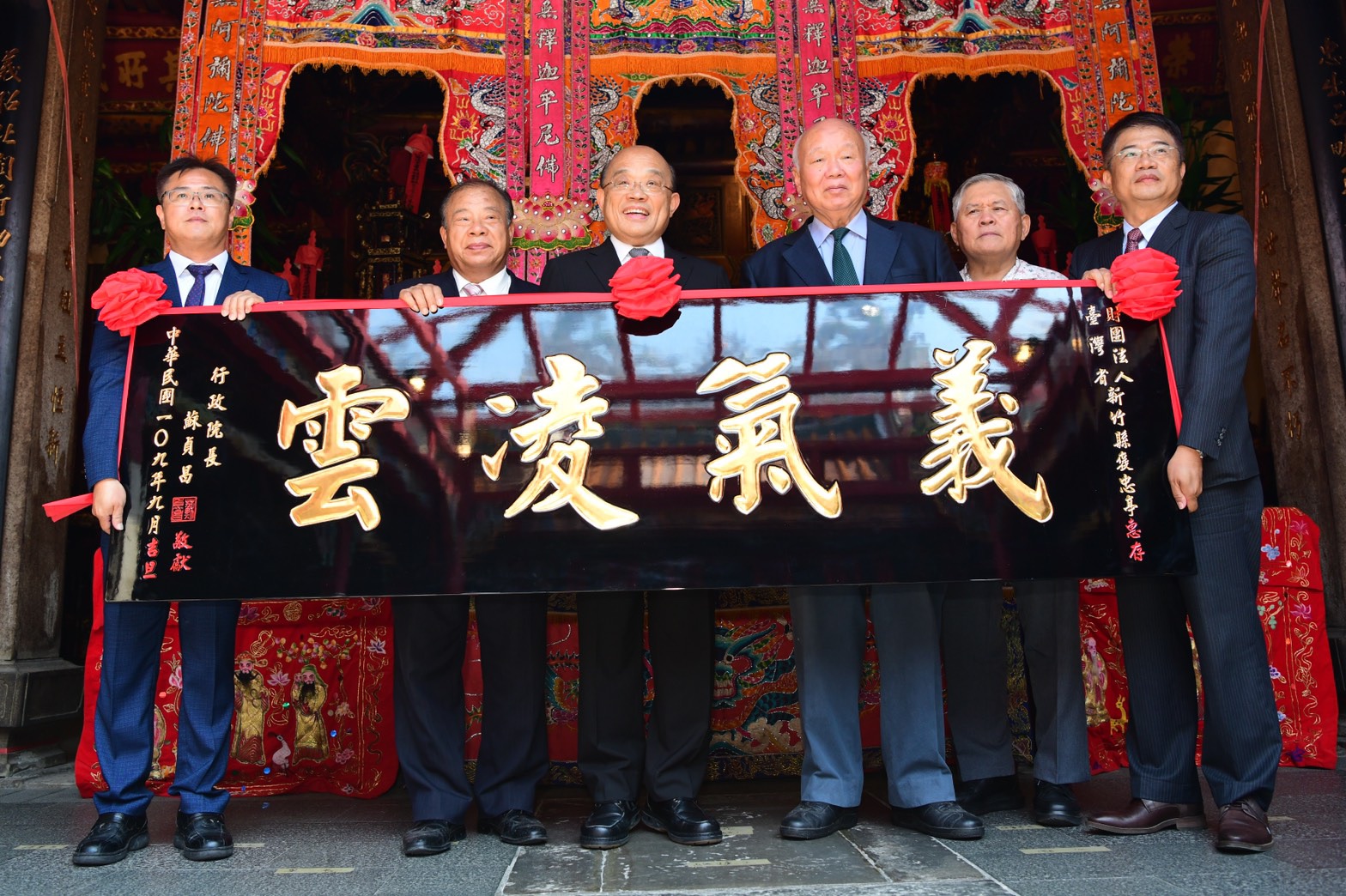 行政院長蘇貞昌今(7)日出席「2020義民節祭祀大典」並首度以行政院長身分致贈廟方「義氣凌雲」匾額。蘇院長表示義民爺的精神是保鄉衛土,而政府所做的每件事,像是守住非洲豬瘟、守好武漢肺炎等都是為了保衛臺......【詳全文】