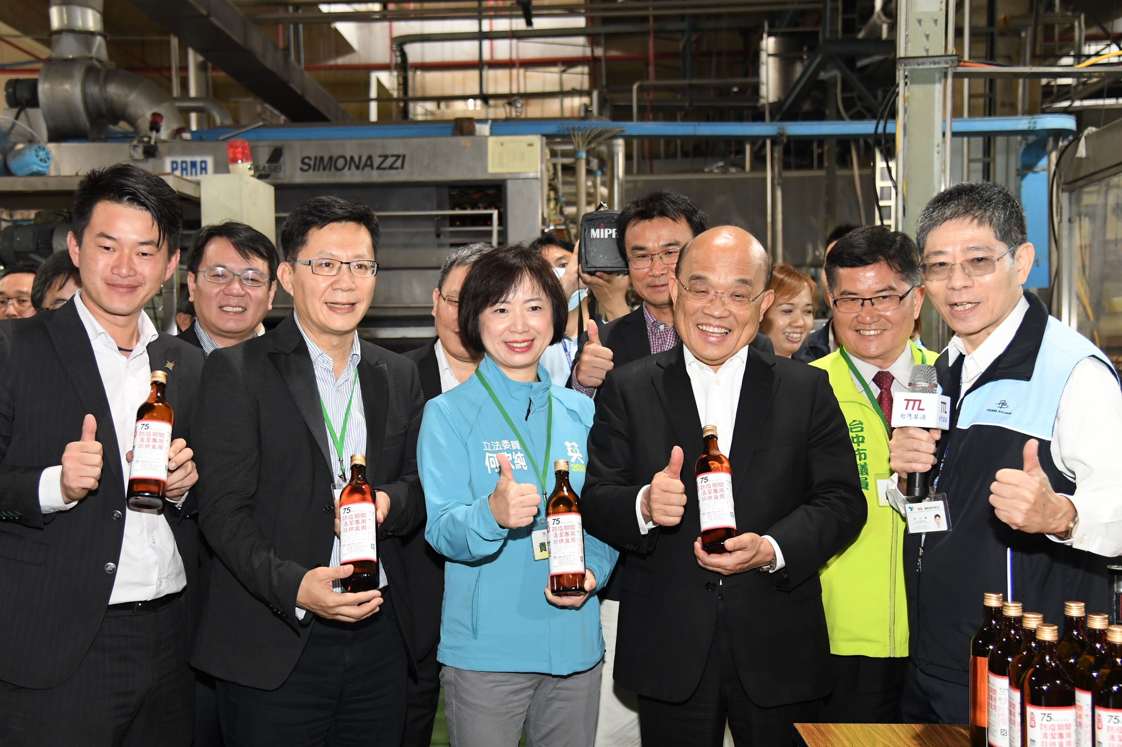 行政院長蘇貞昌今(28)日視察台灣菸酒公司台中酒廠,向第一線工作人員加油打氣,感謝財政部、台酒公司及農委會提供物資,生產防疫酒精供應國人。蘇院長表示,從此次疫情中看到台灣人同舟一命、團結努力,才能一起......【詳全文】