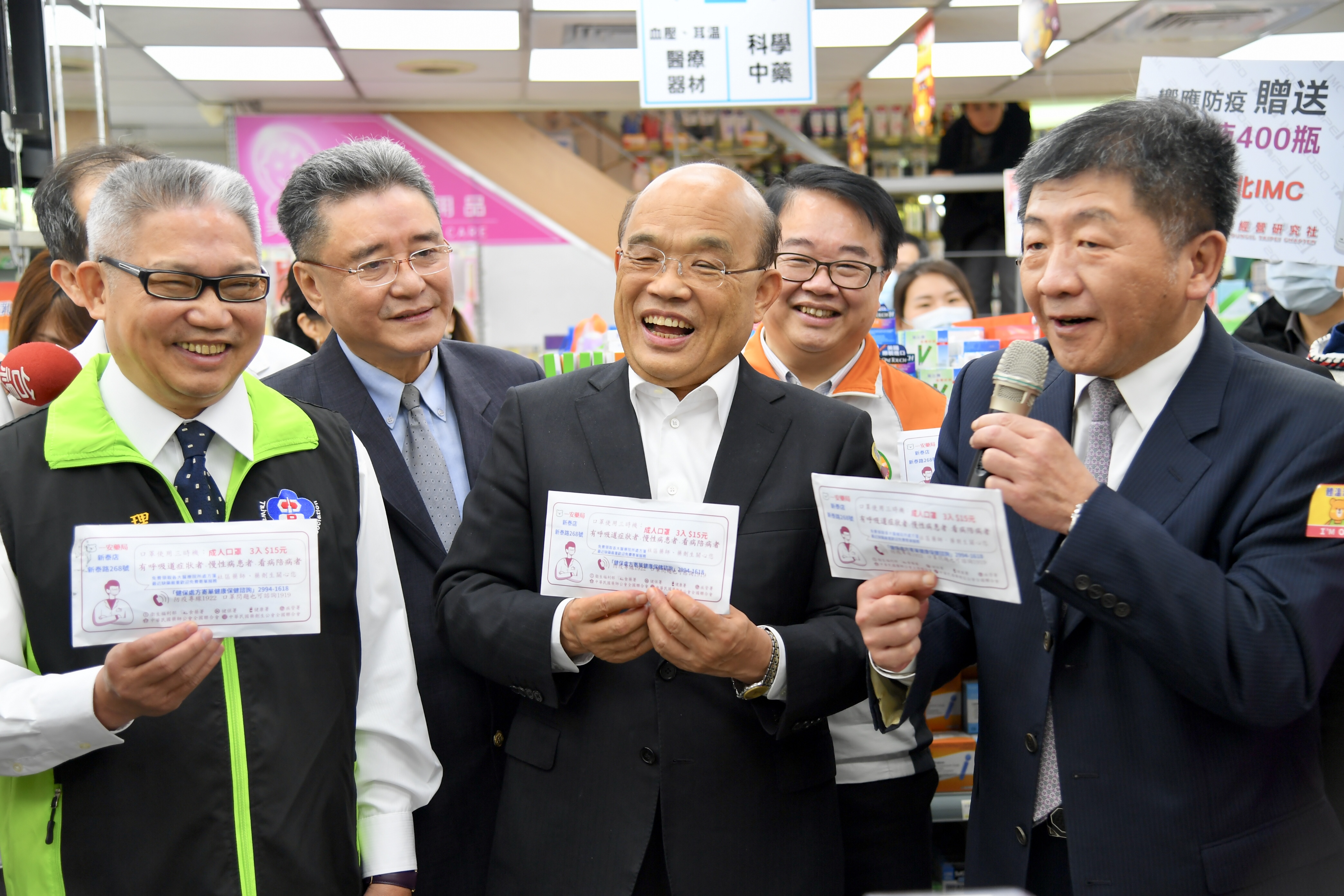 行政院長蘇貞昌今(29)日參訪新莊「一安藥局」,向全國藥師、藥劑生長期以來協助政府致上最高謝意。院長也感謝一安藥局能發想不同的方法,像是便民的口罩機、排隊中進行防疫宣導等,讓民眾方便買到口罩的同時也能......【詳全文】