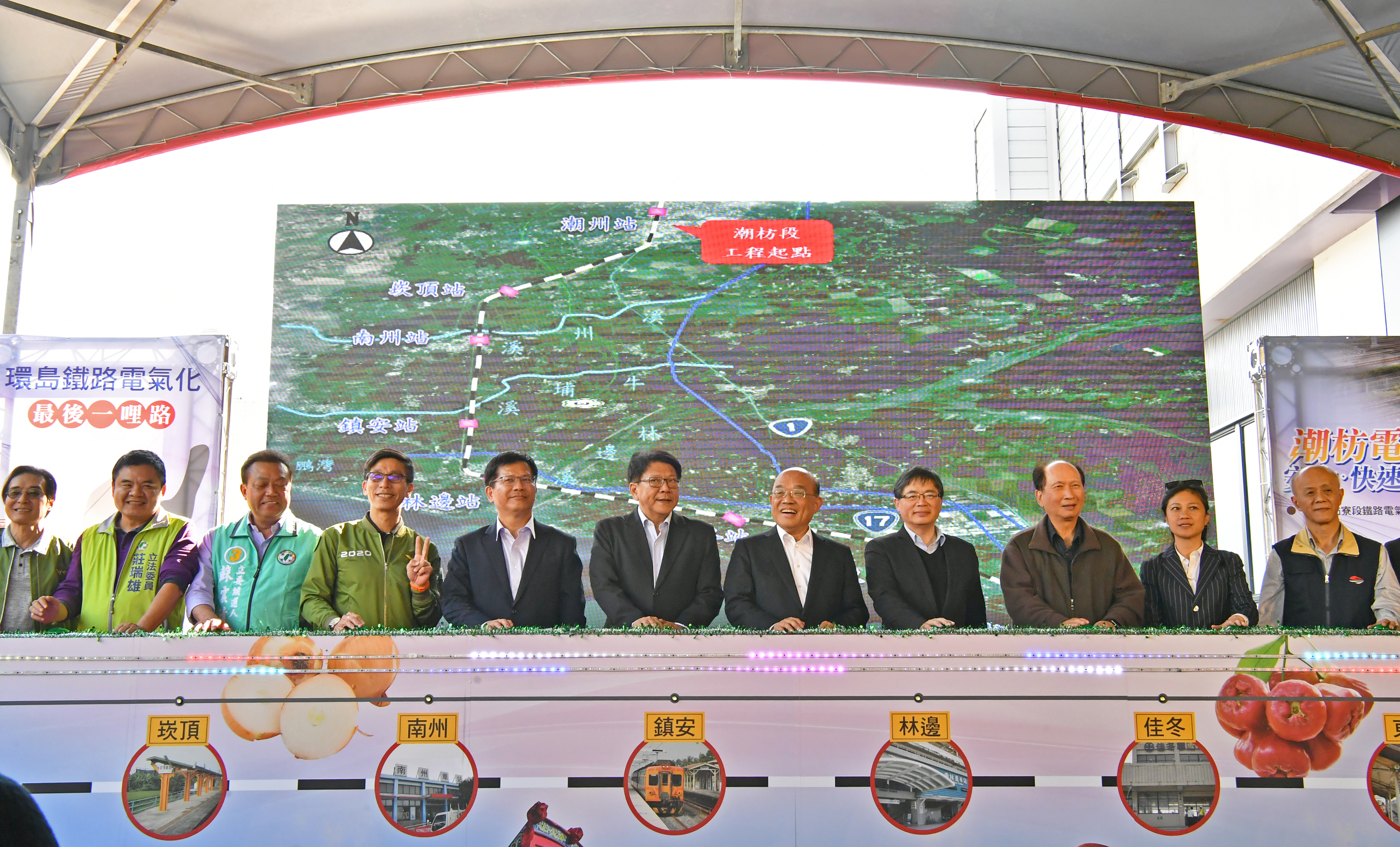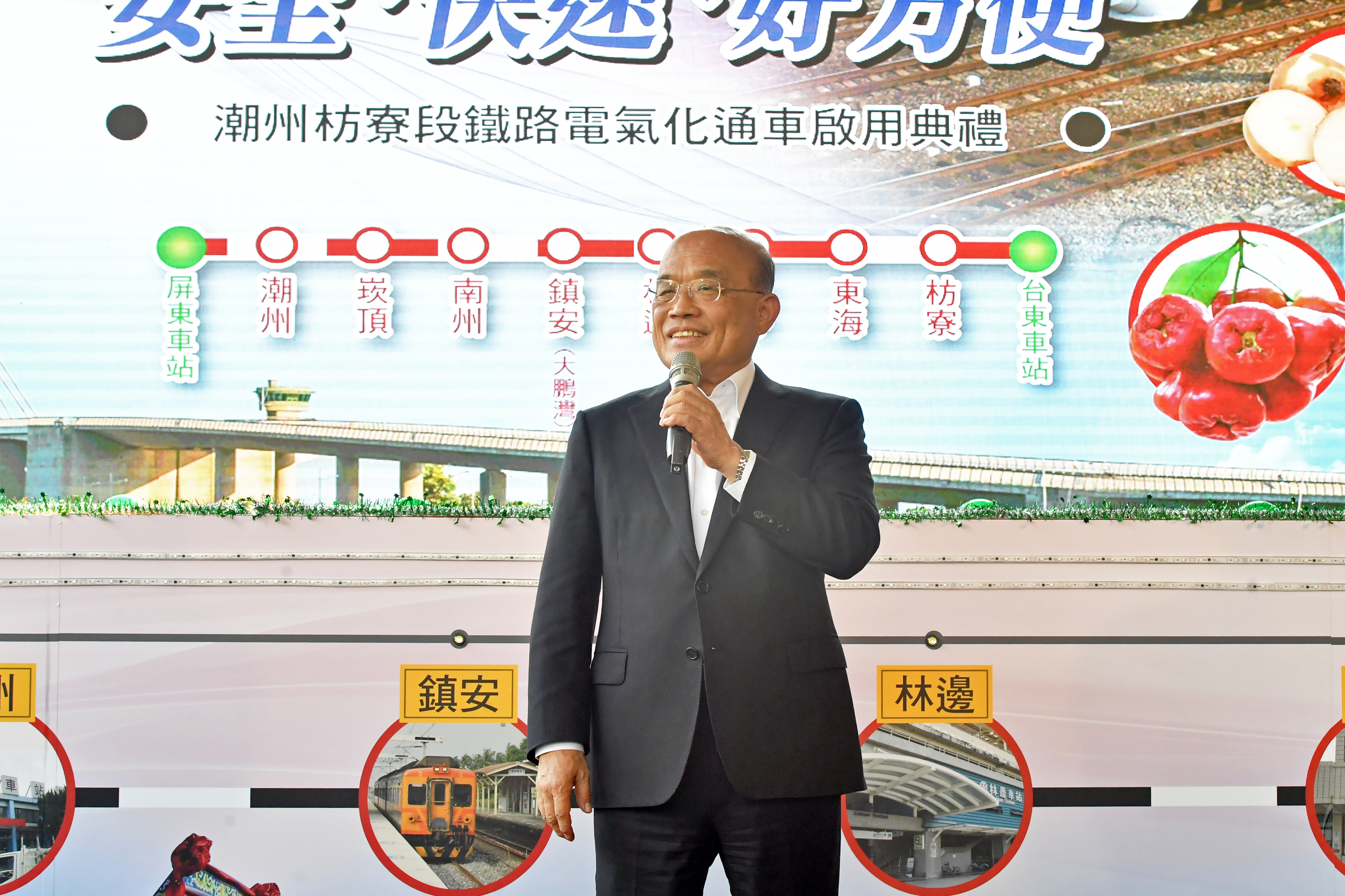 行政院長蘇貞昌今(23)日由屏東枋寮搭乘火車至潮州,體驗南迴鐵路潮州至枋寮段電氣化通車,並出席「南迴鐵路潮州至枋寮段電氣化工程通車啟用典禮」。蘇院長表示,今日他一早出席南迴公路拓寬改善工程全線通車,從......【詳全文】