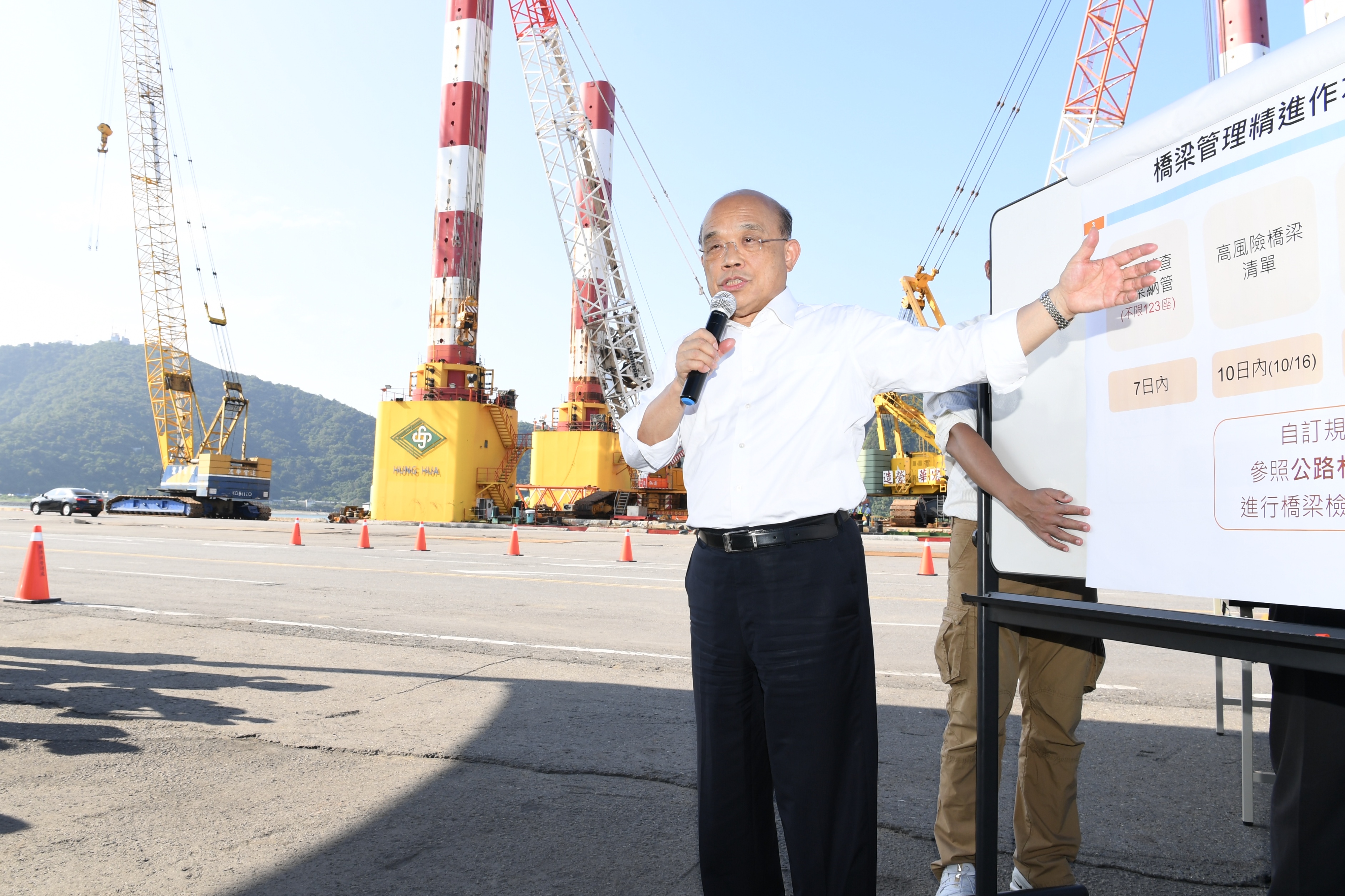 行政院長蘇貞昌今(7)日視察南方澳跨港大橋現場時表示,對於此次不幸的災害,大家應該痛定思痛,請地方政府立即對高風險橋梁進行維修並檢驗特殊結構橋梁,若有財務困難,中央將大力協助相關經費。蘇院長更進一步指......【詳全文】