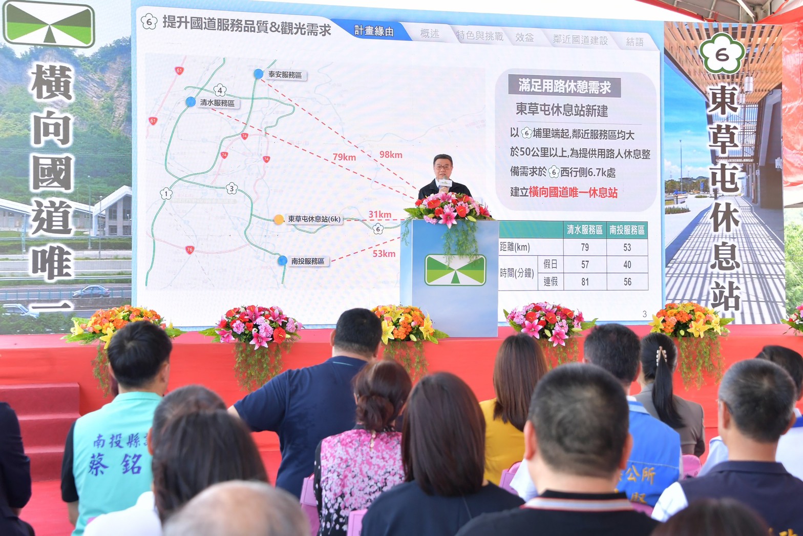 行政院長卓榮泰今(13)日出席「國道6號東草屯休息站新建工程」啟用典禮時表示,東草屯休息站融合當地自然生態景觀,在公共廁所設計上,亦兼顧性別平權,同時建築物屋頂也採用太陽能光電板設備,提供自主能源予休......【詳全文】