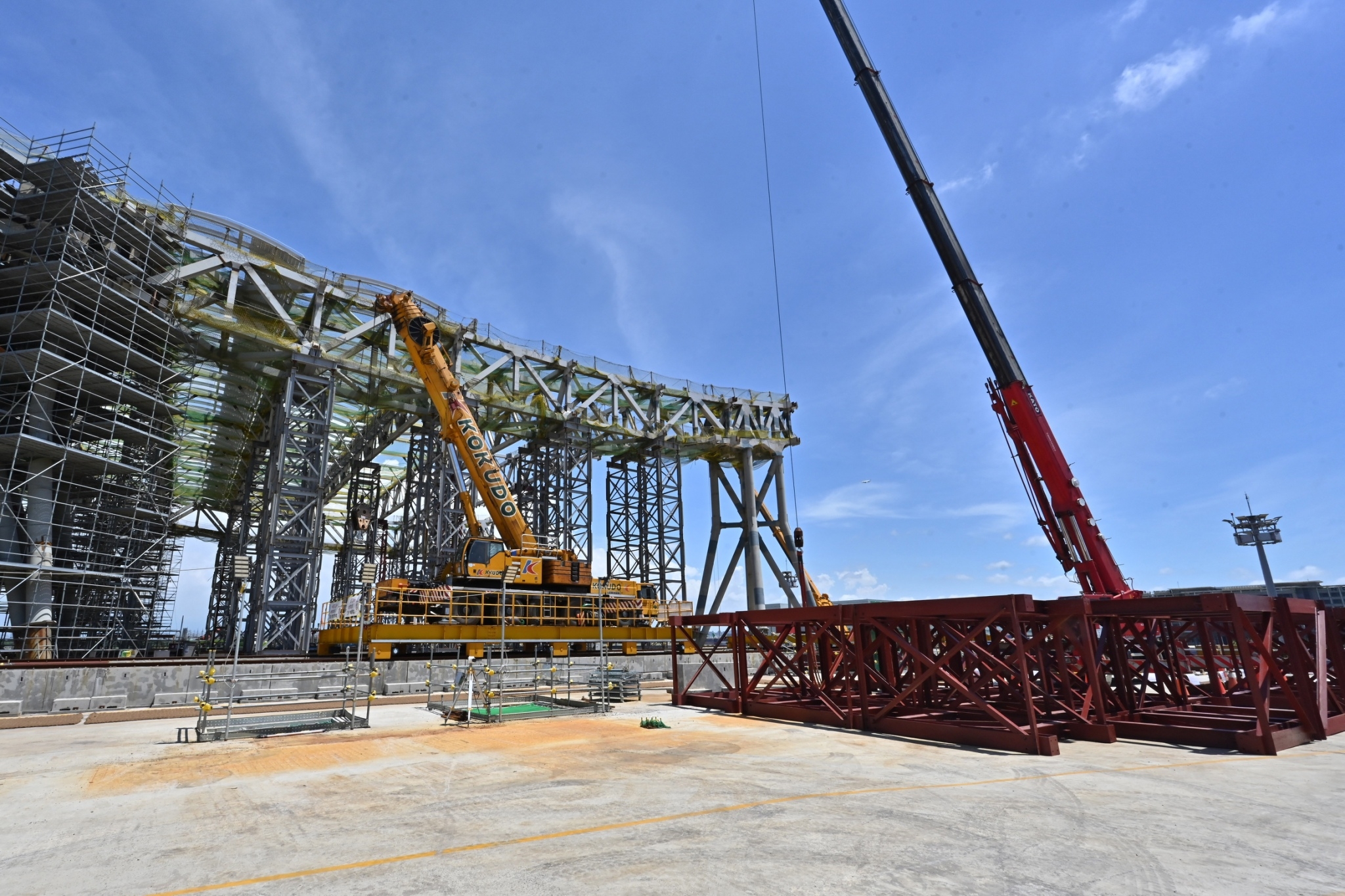 地點:桃園國際機場第三航廈工區(工區入口:桃園市大園區航站南路,google座標:25.06880, 121.22350)考量場地空間限制,並確保工地安全,本行程僅開放持有機場通行證之媒體採訪,由本院新傳處提供影音及照片。