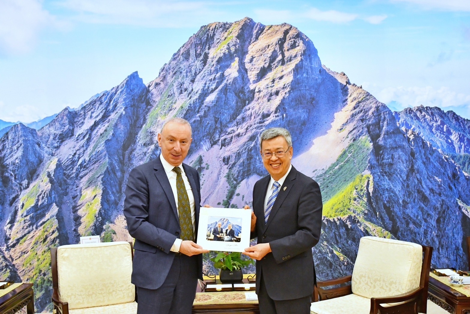 地點:行政院玉山廳1、各媒體限1名文字記者入場,並由中央社及新傳處提供照片。 2、開放媒體至訪賓致詞結束。 3、欲採訪媒體,請於13:45至行政院記者室集合,並請由本院北平東路門口進入院區。