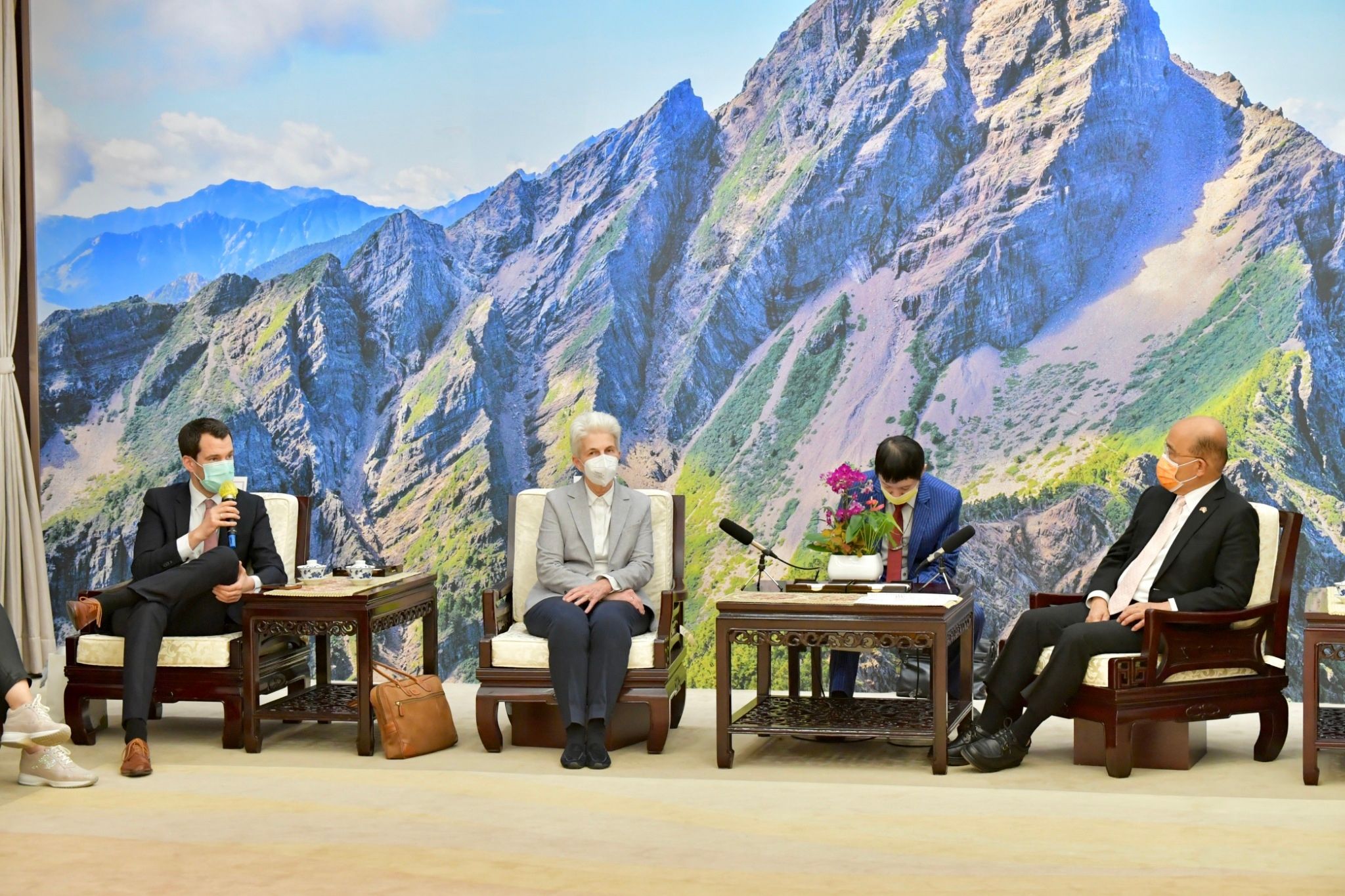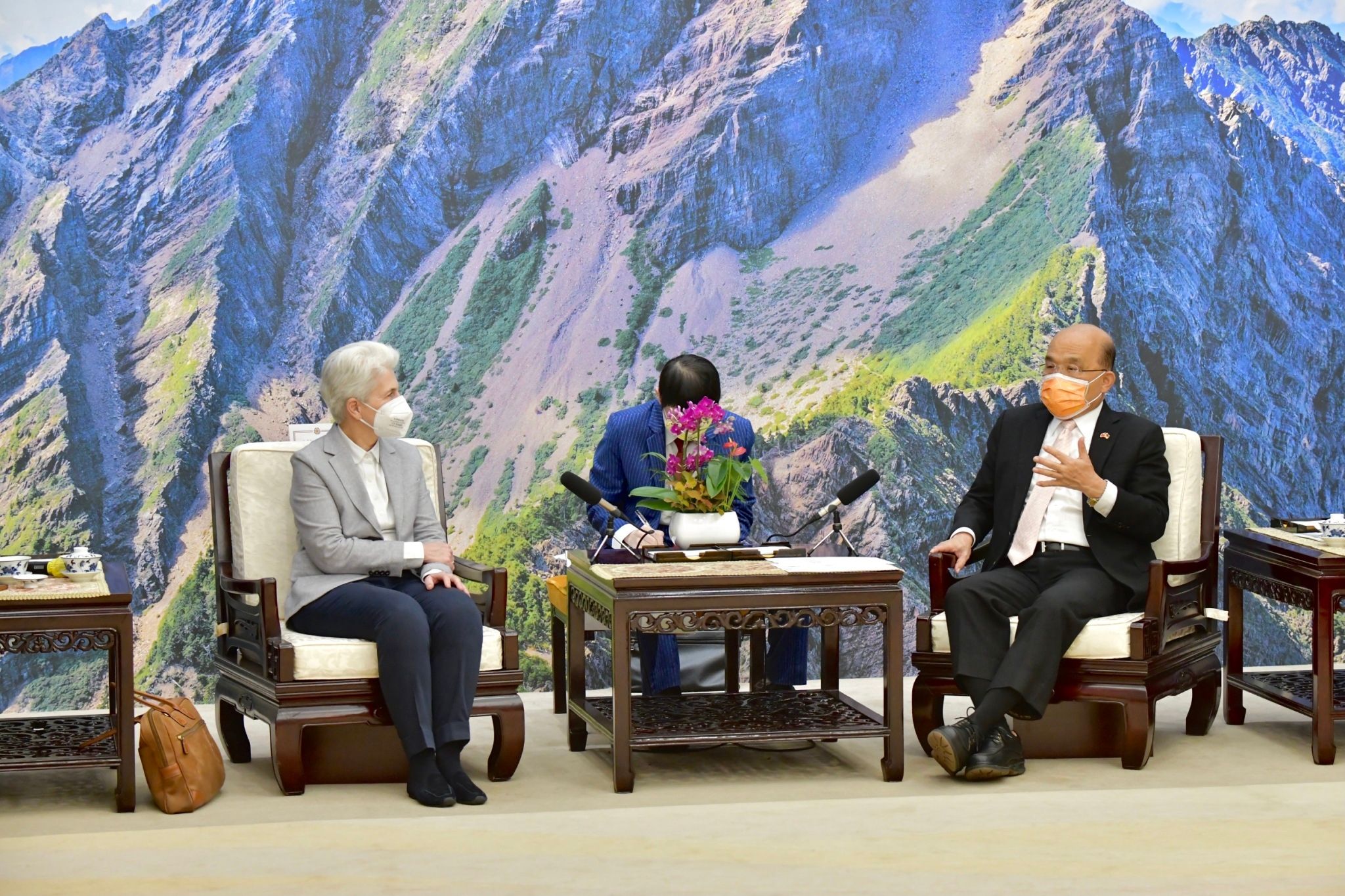 地點:行政院玉山廳1.因防疫考量,各媒體限1名文字記者入場,並由中央社及新傳處提供照片;影像採「共訊」方式辦理,已協調SNG聯誼會共訊。2.開放媒體至雙方致詞結束。3.欲採訪媒體,請於15:45至行政院記者室集合,並請由本院北平東路門口進入院區。4.配合防疫,媒體朋友請全程佩戴口罩並保持社交距離。