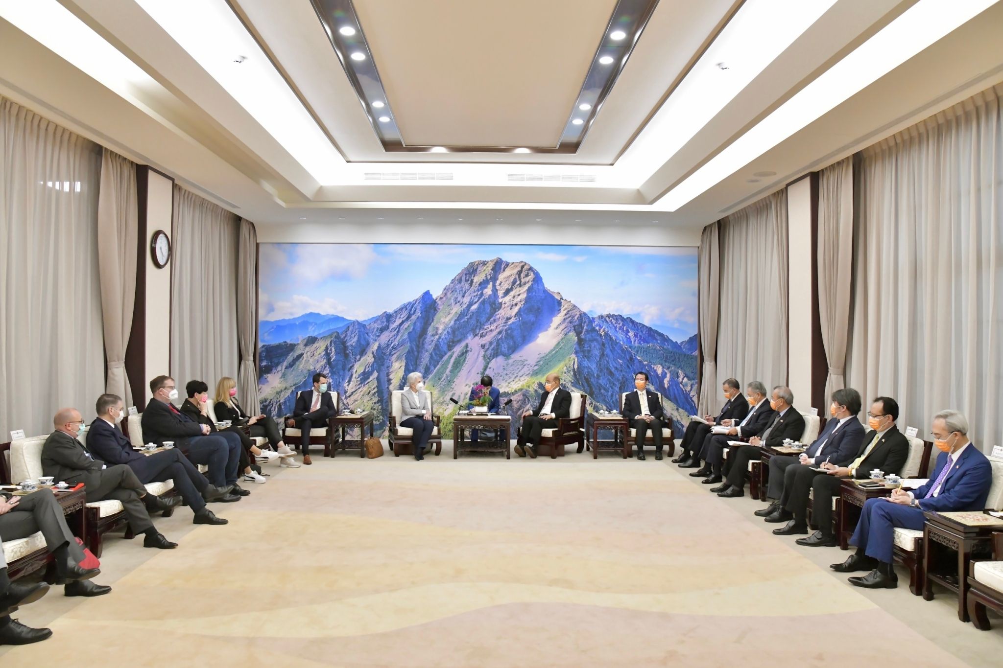 地點:行政院玉山廳1.因防疫考量,各媒體限1名文字記者入場,並由中央社及新傳處提供照片;影像採「共訊」方式辦理,已協調SNG聯誼會共訊。 2.開放媒體至雙方致詞結束。 3.欲採訪媒體,請於15:45至行政院記者室集合,並請由本院北平東路門口進入院區。 4.配合防疫,媒體朋友請全程佩戴口罩並保持社交距離。