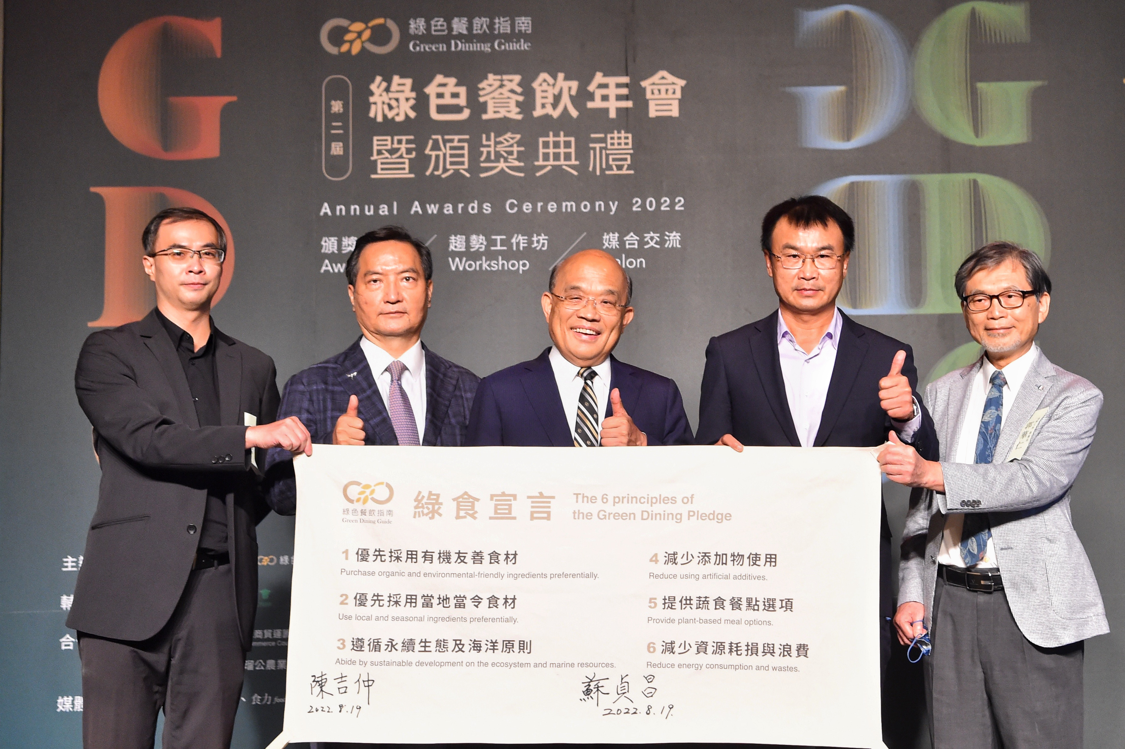 行政院長蘇貞昌今(19)日出席「2022第二屆綠色餐飲年會暨頒獎典禮」,親自頒獎表彰此次獲獎的餐廳業者,肯定其努力推廣綠色餐飲理念。院長表示,為達環境永續目標,蔡英文總統已宣布「2050淨零排放」是臺......【詳全文】