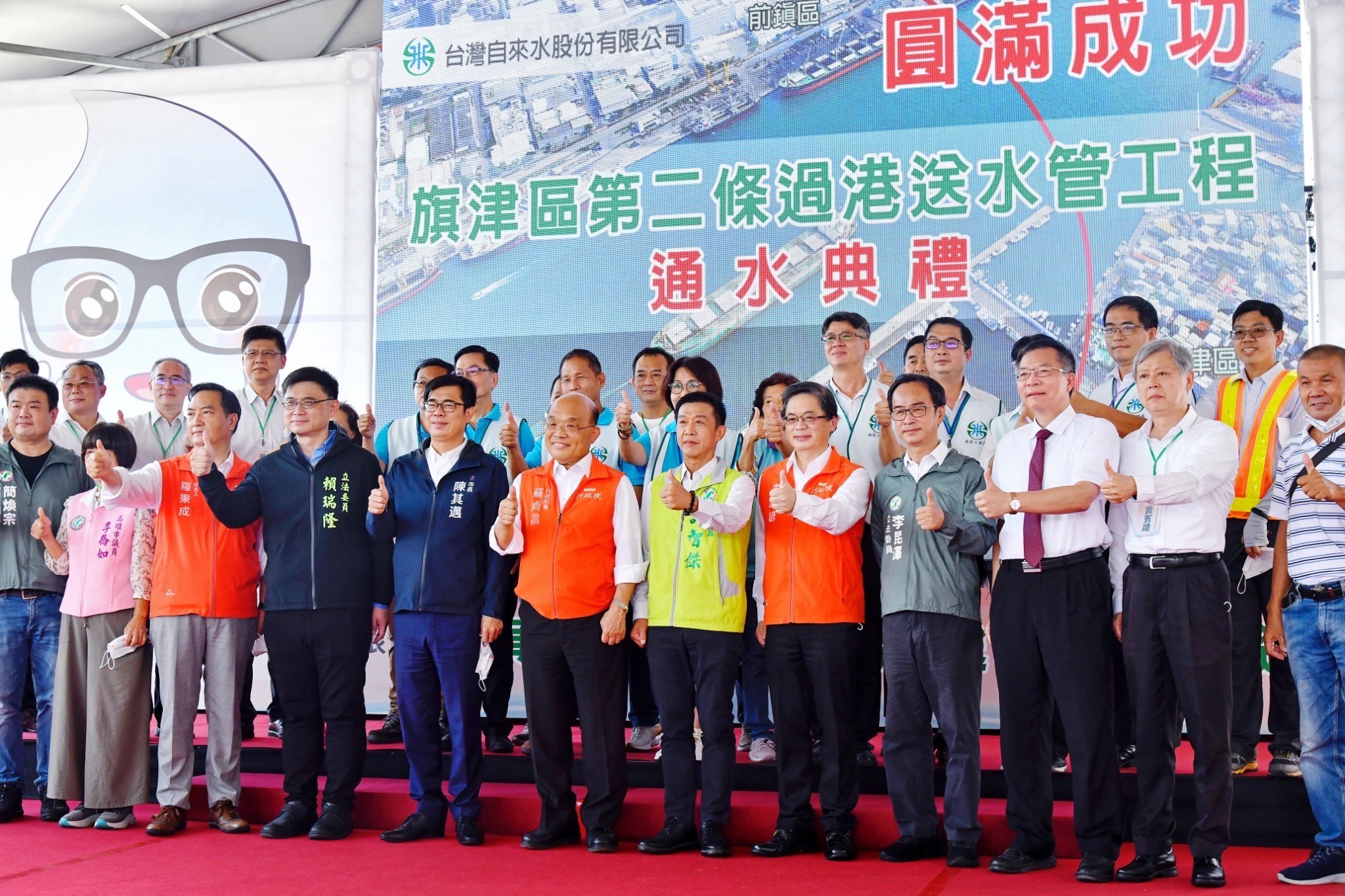 行政院長蘇貞昌今(29)日赴高雄市出席「旗津區第二條過港送水管工程通水典禮」時表示,面對極端氣候,為打造穩定供水、減少淹水的優質水環境,蔡政府投入1,300多億元經費,推動「前瞻基礎建設計畫-水環境建......【詳全文】