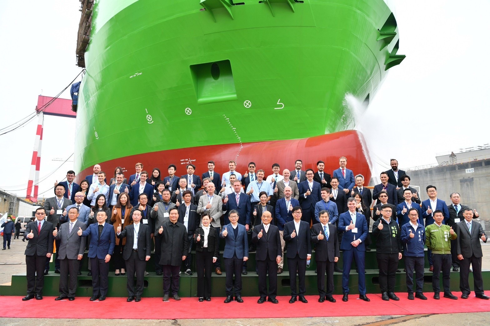 地點:台灣國際造船股份有限公司造船塢(高雄市小港區中鋼路3號)1、防疫考量,本行程採「共訊」方式辦理,已協調SNG聯誼會共訊,並由新傳處提供照片。配合防疫,媒體朋友請全程佩戴口罩並保持社交距離。 2、媒體請於台船公司大門處進行報到並換證,由台船公司統一接駁進入會場。