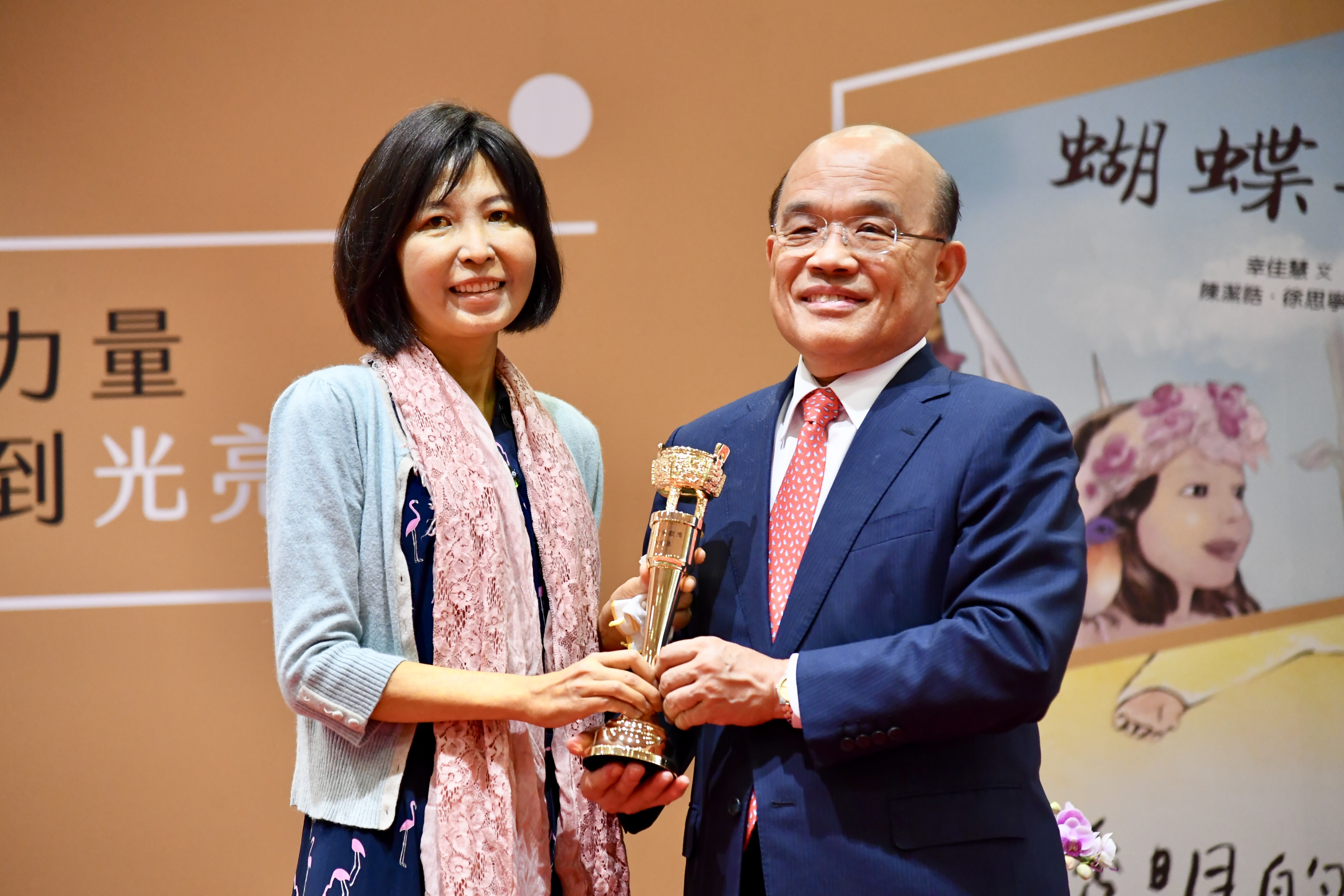行政院長蘇貞昌今(12)日出席「第43屆金鼎獎頒獎典禮」,特別向榮獲特別貢獻獎的幸佳慧女士致敬,也親自頒發「數位創新獎」予獲獎人。蘇貞昌表示,行政院積極推動「出版產業振興方案106-109年中程計畫」......【詳全文】