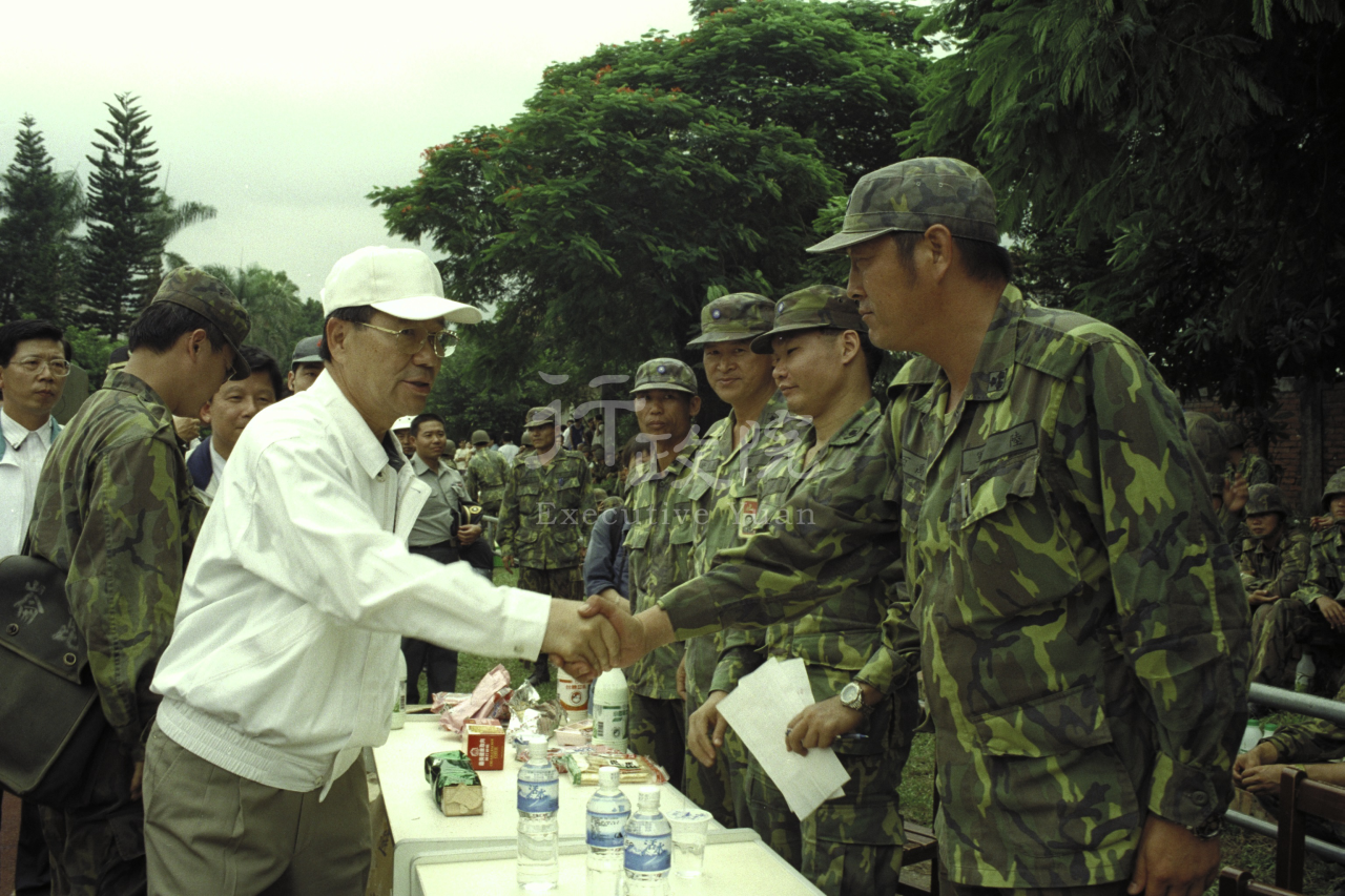 1999年09月22日921行政院長蕭萬長視察南投埔里中寮台中等地探問軍方救難人員
