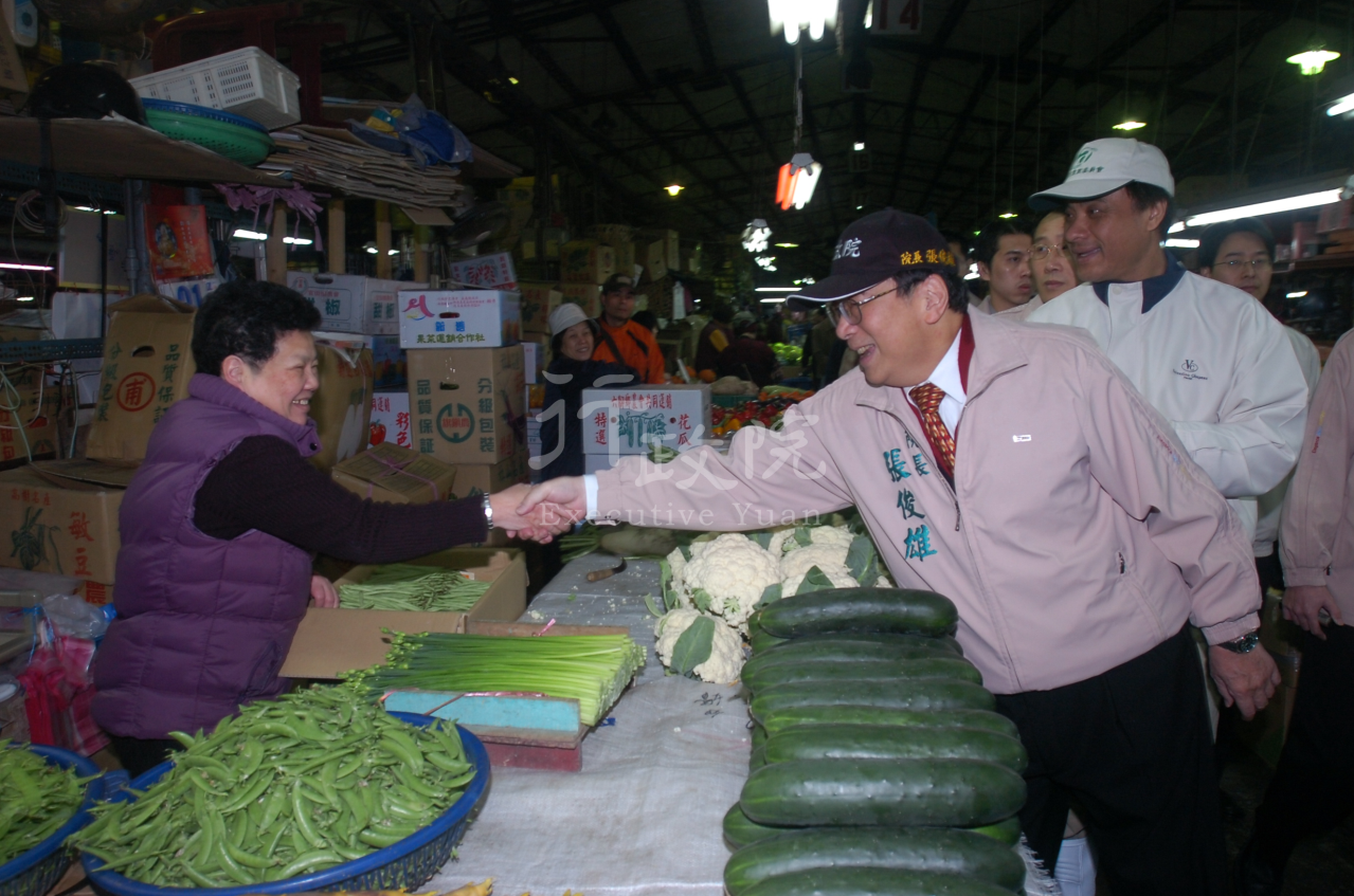 2008年01月31日行政院張俊雄院長視察台北漁產農產公司春節農產品批發供應情形