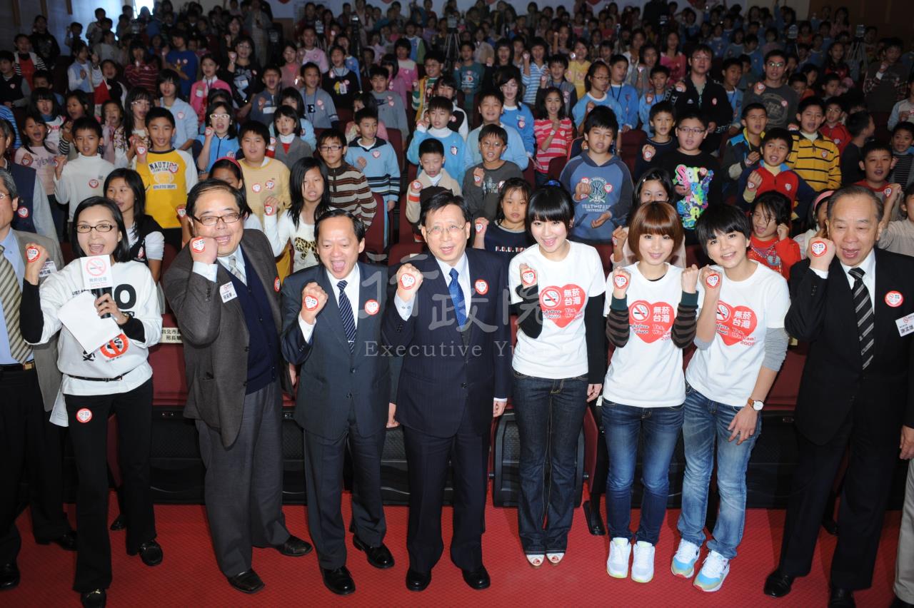 行政院長劉兆玄為響應無菸台灣的理念,今(9)日出席由董氏基金會在台北市長安國小所舉辦的「無菸台灣Yes, We Can」活動。劉院長在致詞時強調,健康的身體是國家的競爭力,菸害防制法新制即將在明(98)年1月11日開始實施,對於禁菸場所、菸品販售及廣告促銷,都有新的嚴格的規範,期盼藉此保障人民的健康、提升人民生活品質。 劉院長在活動時並帶領小朋友宣示「2009無菸台灣」,呼籲大家一起遵守法令。劉院長強調,吸菸不僅有害自己的健康,同時製造二手菸,危害別人的健康,所以希望小朋友們都能下定決心,除了自己不要吸菸外,也要勸別人不要吸菸。院長期望每位小朋友都能擔任拒菸小尖兵,除了適時提醒父母和師長外不要吸菸外,如果看到不符合規定的吸菸場所或菸品販賣,也可以向有關單位檢舉。 為促進國人健康及提升生活環境品質,呼應世界衛生組織菸草控制框架公約「無菸環境準則」,我國於民國96年完成菸害防制法修法工作,新規定將於下月11日正式實施。屆時高中職以下學校、醫療機構室內外全面禁菸,政府機關、3人以上共用之室內辦公室全面禁菸,餐廳、旅館、商場等等場所,除吸菸室外不得吸菸,在禁菸場所吸菸者最高可處1萬元罰鍰,禁菸場所未設置標示或供應與吸菸有關器物,最高可處5萬元罰鍰。