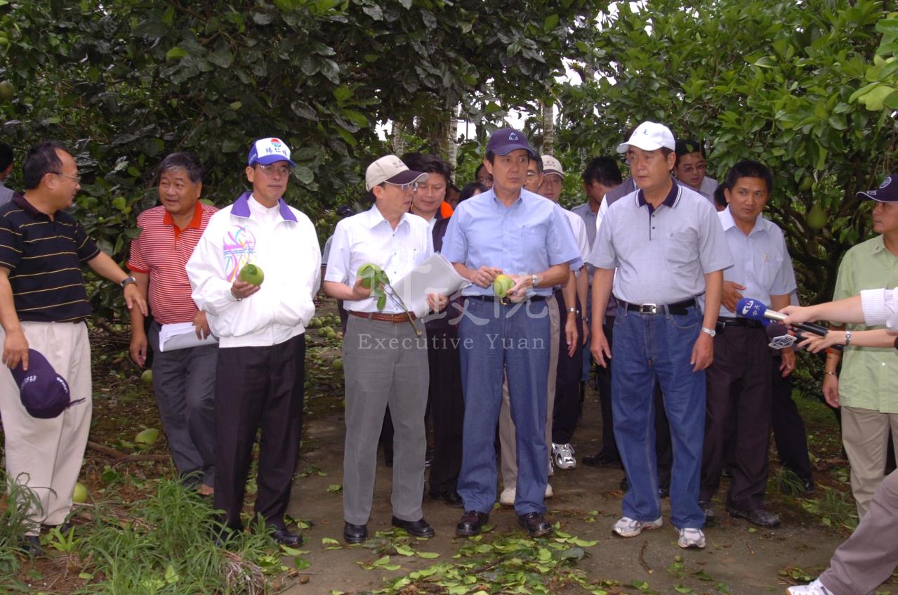 鳳凰颱風在花蓮地區造成文旦等農作物損失災情,行政院院長劉兆玄今(29)日陪同馬總統赴花蓮瑞穗鄉鶴岡村視察時表示,農業天然災害救助辦法已於6月修正,以柚子及西瓜為例,最高補助額度每公頃由新台幣5萬元提高到6萬元;此外,農民還可以申請年利率1.5%的低利紓困貸款,最高額度每公頃75萬元。劉院長同時指示花蓮縣政府,加速行政程序將放款時程縮短到15天以下。