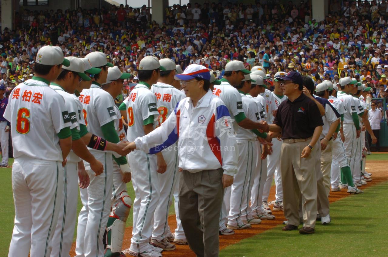 2008年08月09日劉兆玄院長陪同馬總統為中華成棒隊進軍奧運加油