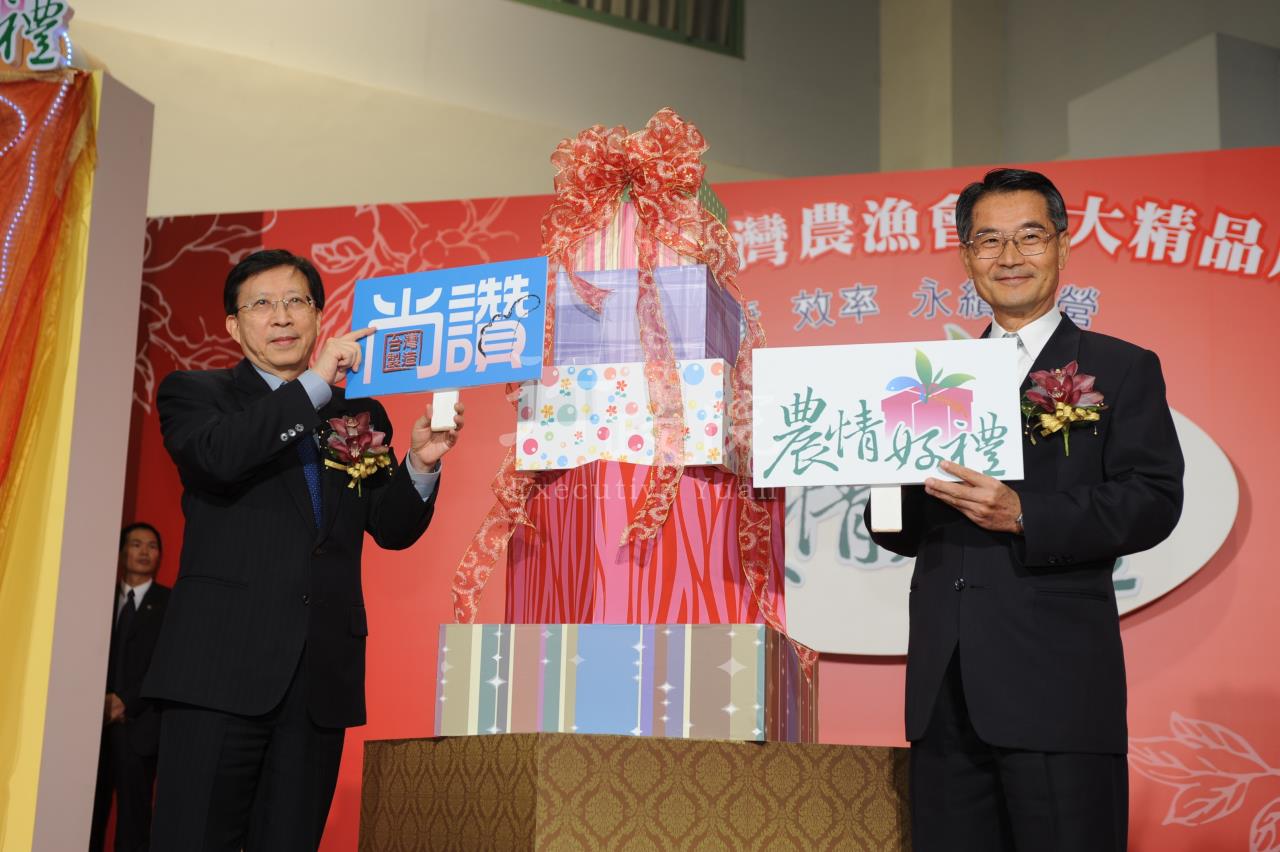 行政院長劉兆玄今(27)日出席「台灣製造‧尚讚—台灣農漁會百大精品展」開幕典禮並主持啟動儀式,劉院長在參觀台灣百大農漁精品及女兒禮展示後表示,台灣的農漁精品,不管是設計、包裝、組合及創意,和五星級飯店櫥窗中展示的跨國精品相比起來毫不遜色,劉院長今天並一口氣買了價值7萬元的台灣農漁精品。 針對新聞局長史亞平日前提到,政府發放3千6百元的消費券,她要消費3萬6千元的說法,劉院長在致詞時打趣的表示,他輸人不輸陣,並強調他今天的消費一定會超過3萬6千元,隨後劉院長即購買了金選桔、田穗米、蘆薈麵拌醬禮盒等多項農漁精品,院長籲請在場民眾多多消費,尤其是尚讚的台灣農漁產精品。 劉院長說,今天展示的精品都是農漁會和所有農友們運用勞力和腦力所呈現的台灣最棒的農漁產品,這些產品與傳統上大家印象中的農漁產品不同,尤其有些精品結合傳統的鄉土趣味和時尚風格,讓人看了後非常想買,他相信今天的活動一定能吸引很多民眾參觀、消費,創造亮麗的銷售數字。 劉院長也特別感謝國內的農漁會,多年來提供台灣農漁業需要的技術、資金,更提供許多創意,幫農友們把辛苦做出來的產品包裝成附加價值更高的精品,是農漁民們最重要的支柱。 今天陪同劉院長出席開幕儀式的有農委會主委陳武雄暨新聞局長史亞平等人。