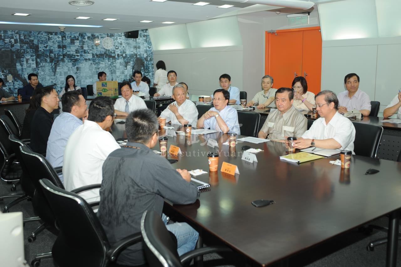 今日陪同劉院長參訪的包括經濟部長尹啟銘、政務委員曾志朗、朱雲鵬、經濟部工業局局長陳昭義及新聞局長史亞平等。