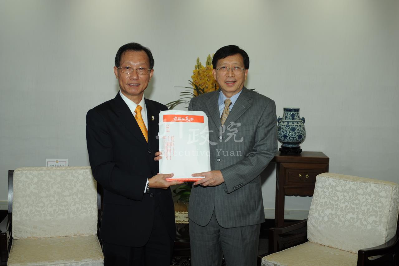 今日陪同劉院長接見的有經濟部長尹啟銘、中小企協理事長林秉彬。