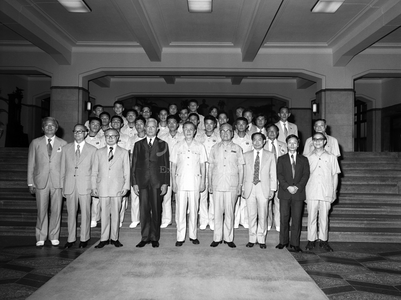 1978年08月29日行政院院長孫運璿與獲得世界冠軍的中華青棒、青少棒代表隊全體隊職員合影