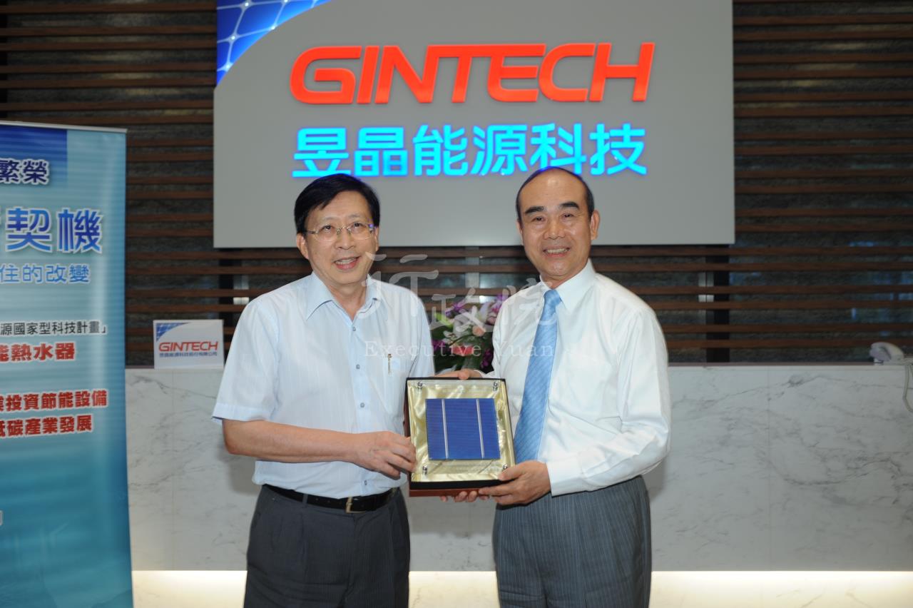 行政院長劉兆玄今(15)日下午參訪新竹科學工業園區竹南園區兩家太陽能產業廠商中美矽晶公司及昱晶能源公司竹南廠,劉院長在聽取廠商簡報後表示,太陽是用不完的資源,太陽能產業是明日之星,台灣的太陽能技術已有長足的進步,他對於廠商的研發成果表示欽佩,院長也表示,政府一定會和業者一起打拼,將高油價的壓力化為助力。 劉院長說,我們要推動節能減碳的社會,不要讓我們的競爭力消耗在油價之中,太陽能是未來發展乾淨能源的重要項目之一,政府推出了兩個旗艦計畫,一是偏重研究發展的能源國家型科技計畫,另一個是偏重產業的太陽能產業發展計畫,目的是要掌握開發新的技術,院長強調,台灣沒有能源,但不能沒有能源產業,台灣也許不會變成太陽能使用密度最高的國家,但是希望成為太陽能科技輸出的重要國家,這個理想須靠政府政策及產業界大家一起努力。 劉院長指出,能源是國家很重要的政策,行政院期盼立法院能協助儘早通過再生能源條例,讓未來能有更多的法律依據來推動新能源的發展。 劉院長今日參訪的的中美矽晶公司及昱晶能源兩家公司均為新竹科學園區太陽能產業的指標性廠商,根據統計,竹科97年1至6月太陽能產業產值已達新台幣112.81億元,未來藉由政策的推動,將為竹科帶來大幅投資成長,預計至2012年園區的太陽能產值將達新台幣5,000億元。 今日陪同劉院長視察新竹科學園區的有行政院秘書長薛香川、政務委員張進福、朱雲鵬、研考會主委江宜樺、國科會主委李羅權暨經濟部次長謝發達等人。