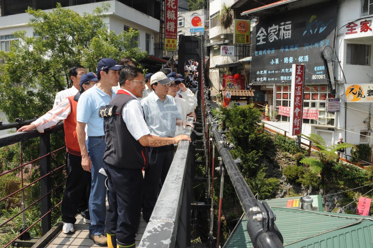 行政院長劉兆玄今(21)日陪同馬英九總統視察因辛樂克颱風受創嚴重的廬山溫泉風景區,劉院長強調,救災及未來的重建,不論中央與地方都責無旁貸,一切都要以真正的解決問題為優先考慮。