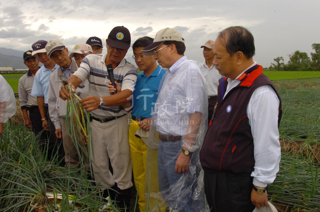 劉院長在三星鄉萬富村視察種植青蔥農民災損情形時強調,農委會已將農業天然災害救助辦法補助上限,由原規定每公頃新台幣1萬6,500元提高為2萬4,000元,就是要增加對農民的補助。
