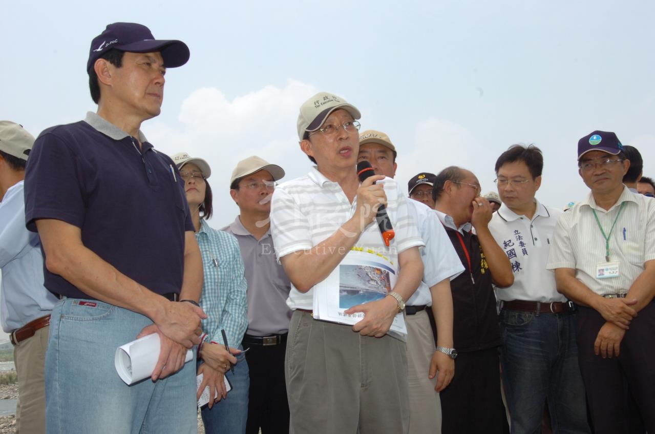 2008年08月09日劉兆玄院長陪同馬總統視察大甲溪舊社堤防防災減災工程