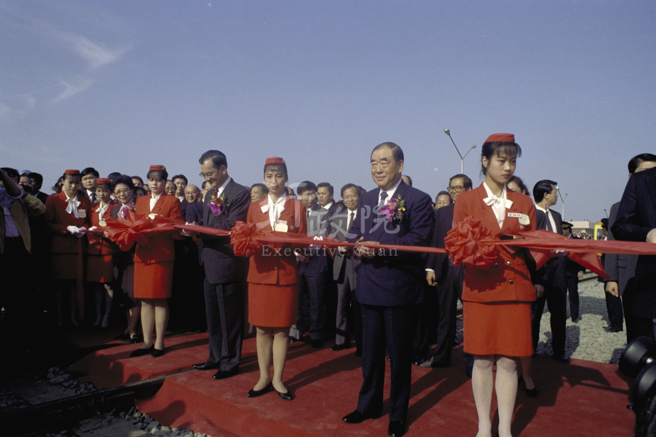 1991年12月16日郝柏村院長及簡又新部長於南迴鐵路通車典禮剪彩 (相關著作權歸屬外交部所有,應取得著作權人之同意或授權後,方得利用。)