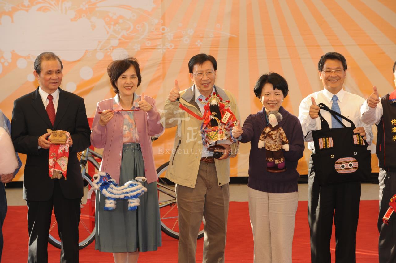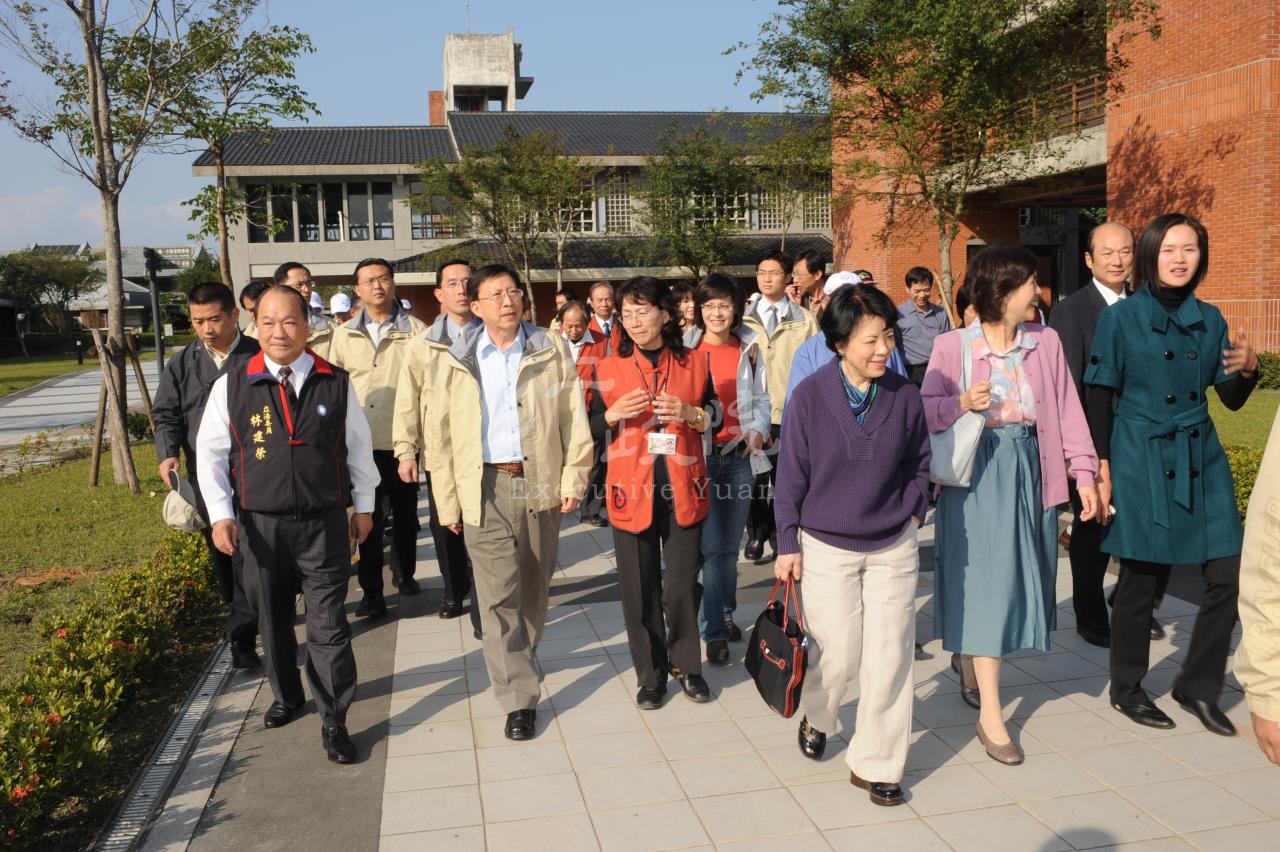 劉院長今天歷時三小時參訪傳藝中心,除觀賞歌仔戲「陳三五娘、磨鏡」,對國寶廖瓊枝女士等人的演出讚賞不已外,更親自動手「拉糖蔥」,並與院長夫人錢明賽一起製作年節版畫,同時參觀了竹藝、布袋戲製作的傳統創意商品,院長也帶頭消費購買竹藝、糖蔥等多項商品近新台幣三萬元。劉院長也邀請了廖瓊枝等藝文人士茶敘,品銘在地風味的金棗茶,鼓勵社區在地產業研發新產品,以活絡地方經濟。