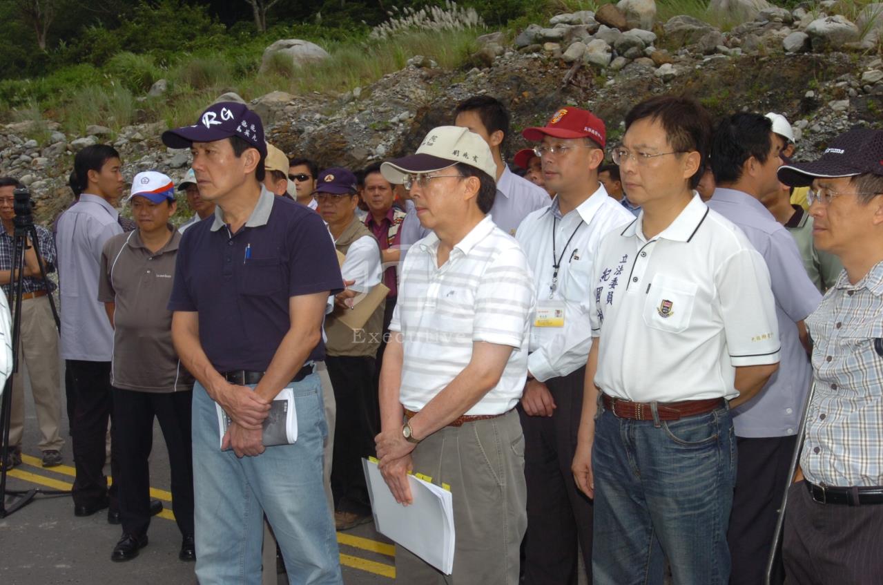 2008年08月09日劉兆玄院長陪同馬總統視察大甲溪砂石車便道