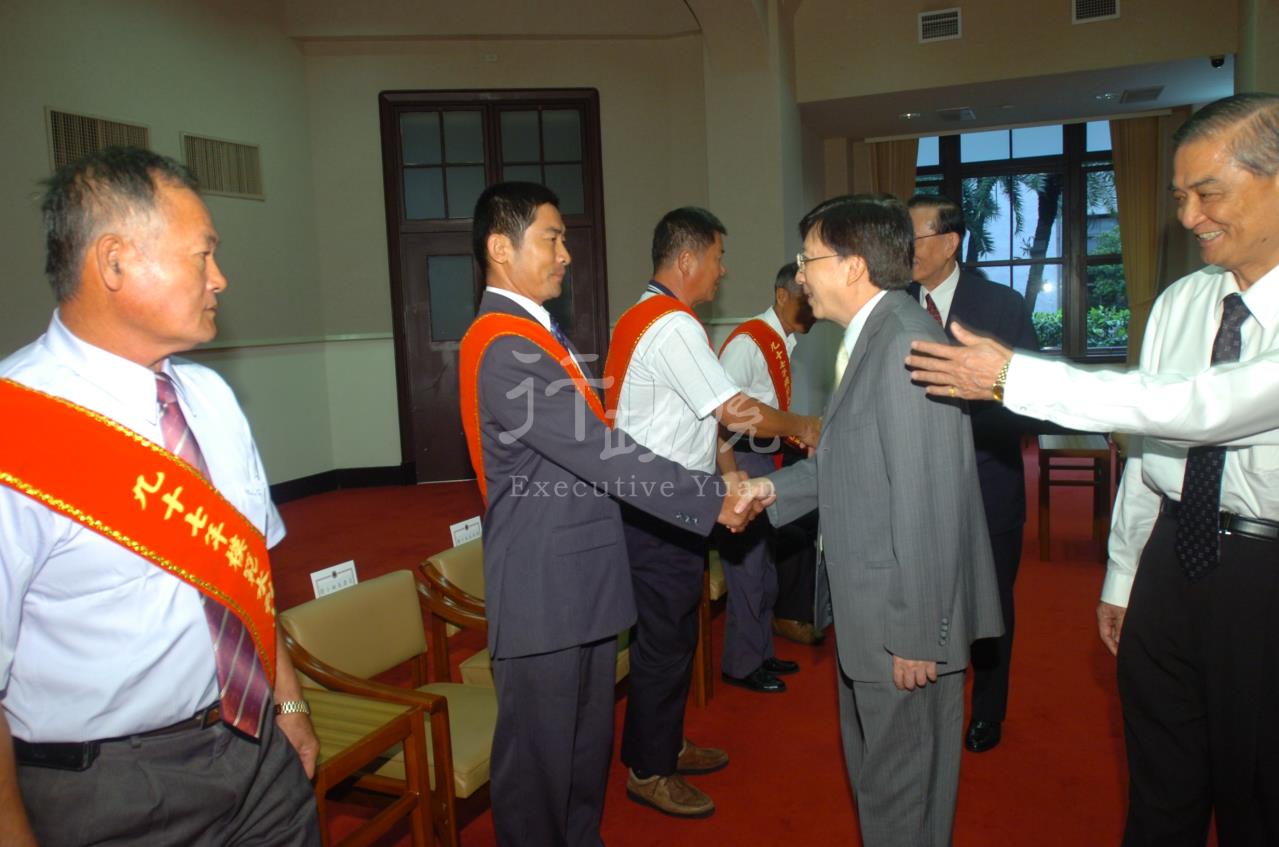 行政院副院長邱正雄今(18)日上午於行政院接見97年度全國模範水利小組長代表,劉院長稍早並與代表合影留念後,便親赴中、南部地區視察因卡玫基颱風影響的相關地區。 邱副院長於接見時表示,全國有17個農田水利會,共有3492個農田水利小組,每個小組都有一位義工擔任水利小組長,在座各位能從三千多人中脫穎而出擔任模範小組長是非常榮耀,個人謹代表劉院長及政府,向各位表達由衷感謝與敬意。 邱副院長強調,台灣面臨全球化挑戰,振興經濟已是政府當務之急,目前政府提出廉能、專業、永續及均富作為施政努力方向,農業與農民是國家經濟發展的寶貴資產,政府在建設美麗家園過程中,要充分考慮農業與農、漁民的福利,未來將透過馬總統12項農業建設及愛台12項建設的規劃與執行,逐步達到健康、效率、永續經營的全民農業,並以企畫化經營方式提高農業生產效率,加強關心消費者食品安全衛生,好與生態環境共容共生。 邱副院長說,他出生宜蘭移居花蓮,在生活過程中可以感受各地農田水利會的努力以及政府的協助,讓台灣地區建構完善的農田水利灌溉排水網路,除了充分供應農田灌溉,更具維護農村環境生態的保育功能。副院長表示,農田水利在台灣是和生活、生態緊密結合,也是推行政府政策的事業團體,農田水利事業的發展除要與各水利會及政府相關部門努力配合外,還需要健全的基層水利會作為輔助,特別是各水利小組長的努力,希望大家能繼續保持服務農民及鄉里的熱誠,並協助政府推動各項農業施政,隨時反應農民意見,讓政府農業政策與措施更符合農民需要,以提昇農村與農業的永續發展。 本次獲頒97年全國模範水利小組長計張火土及莊佳漳等21名。 今日陪同邱副院長出席接見會為農委會副主委黃有才。