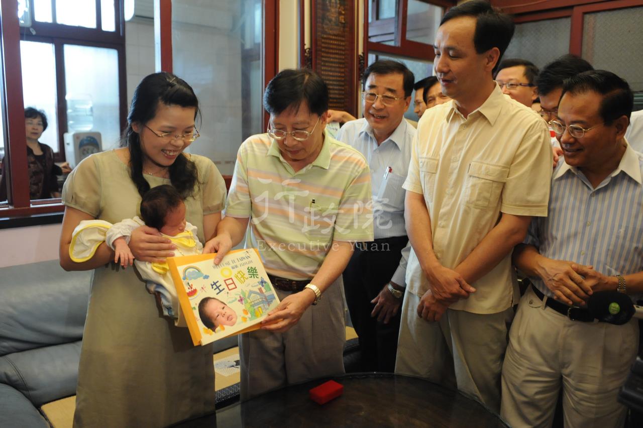 2008年08月16日劉兆玄院長頒贈中華民國第2300萬吳承恩小朋友滿月紀念證書及金牌