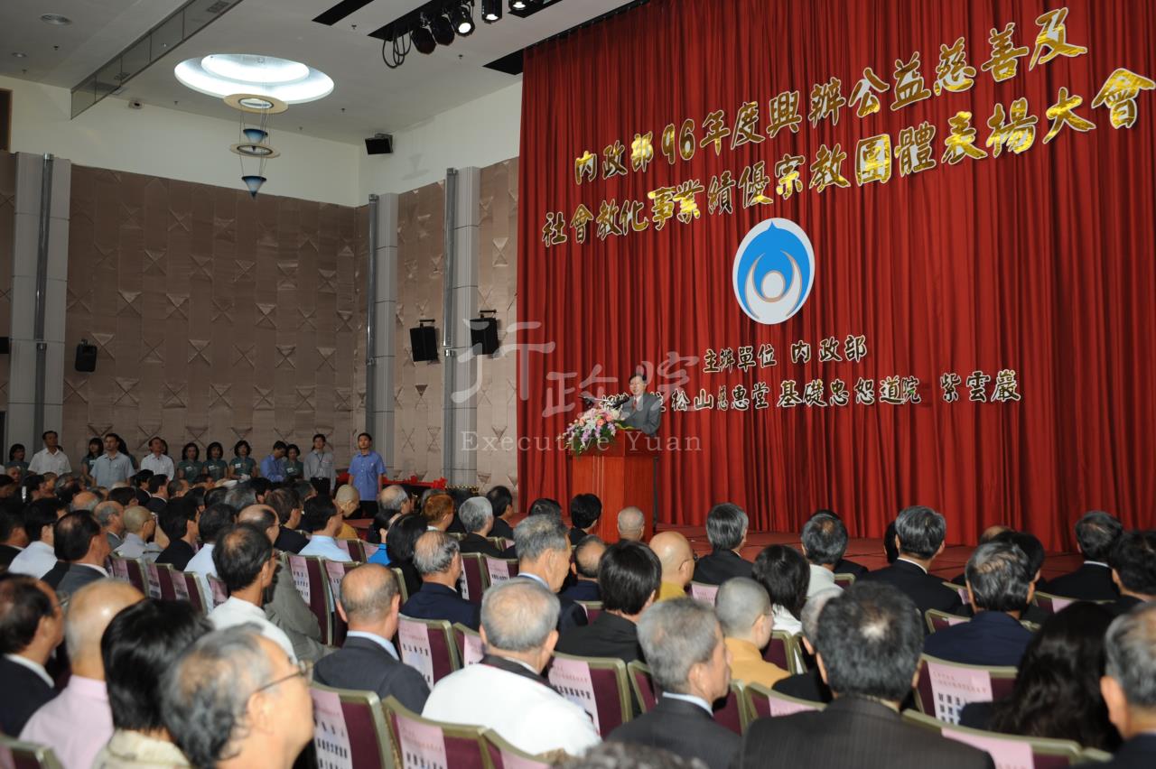 行政院長劉兆玄今(13)日下午出席「96年度興辦公益慈善及社會教化事業績優宗教團體表揚大會」時表示,我國宗教團體的大愛可謂無遠弗屆,宗教界人士不僅長期在臺灣及海外致力於公益慈善工作,如:大陸四川大地震、南亞大海嘯、911事件等重大災難發生後,宗教團體出錢出力並遠赴災區投入救災,撫慰受創者的心靈,讓國際社會看見臺灣的愛與存在。院長推崇宗教團體對我國國際形象與能見度的提升,具有非常卓越的貢獻。