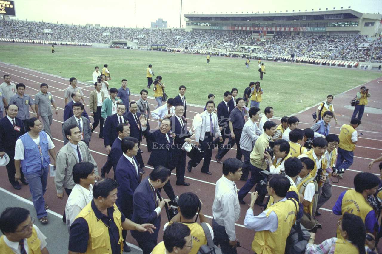 1990年10月26日七十九年台灣區運動會:郝柏村院長繞場向大家問好
