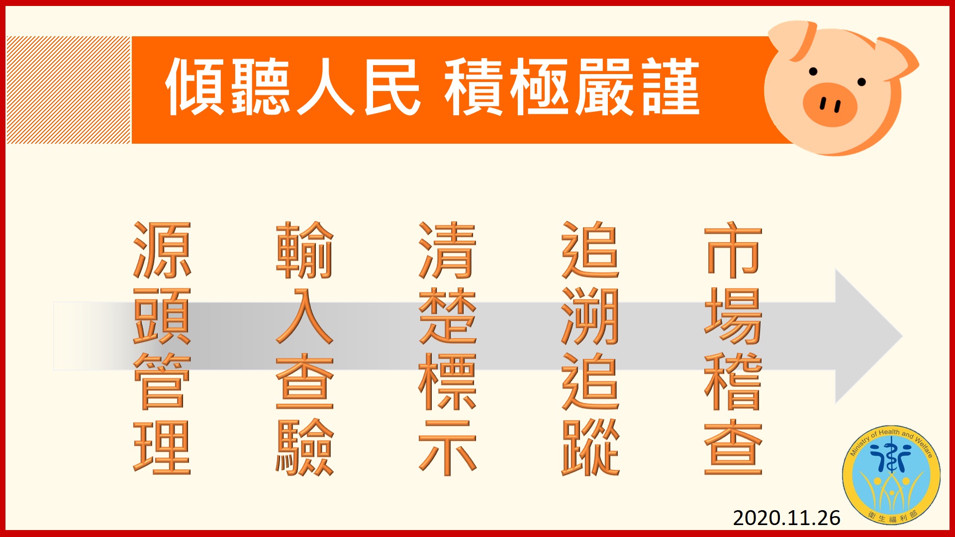 一、源頭管理:為強化國人對進口豬肉管理的信心,衛福部積極聯繫美方辦理實地查核。
